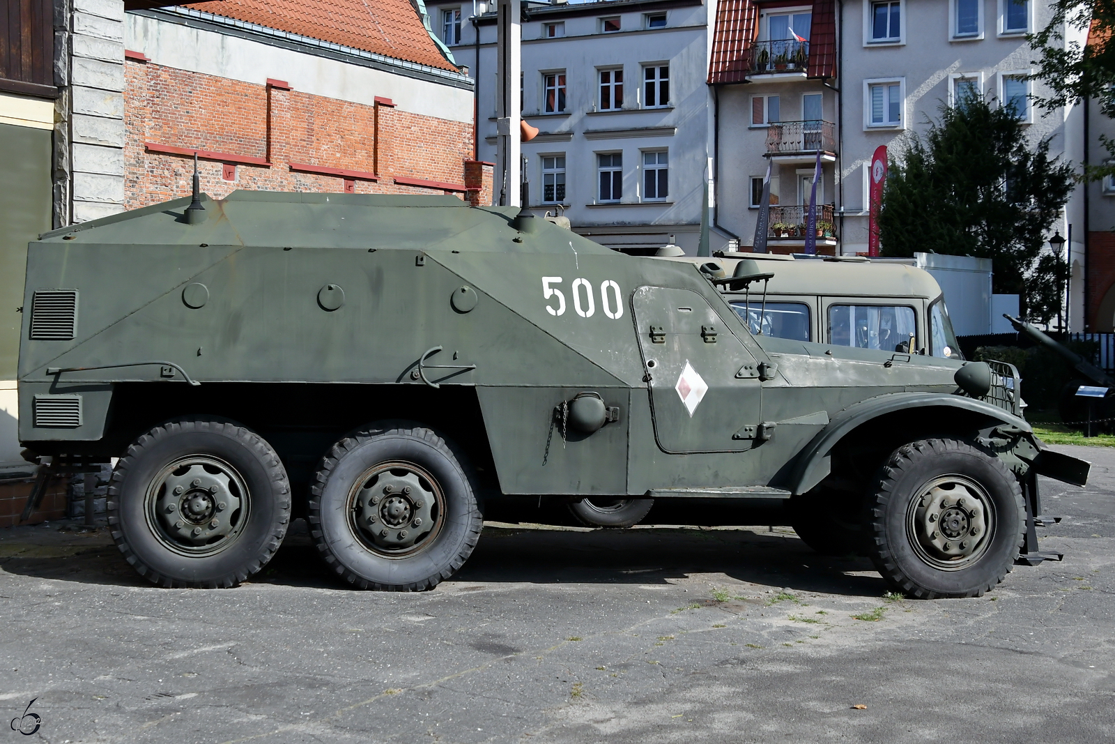 Anfang September 2024 war im Waffenmuseum Kołobrzg (Kolberg) das gepanzerte und voll amphibische ABC-Aufklärungfahrzeug BRDM-2Rkhbt ausgestellt.