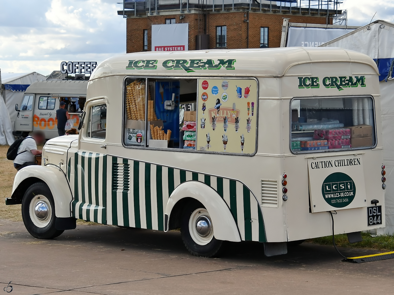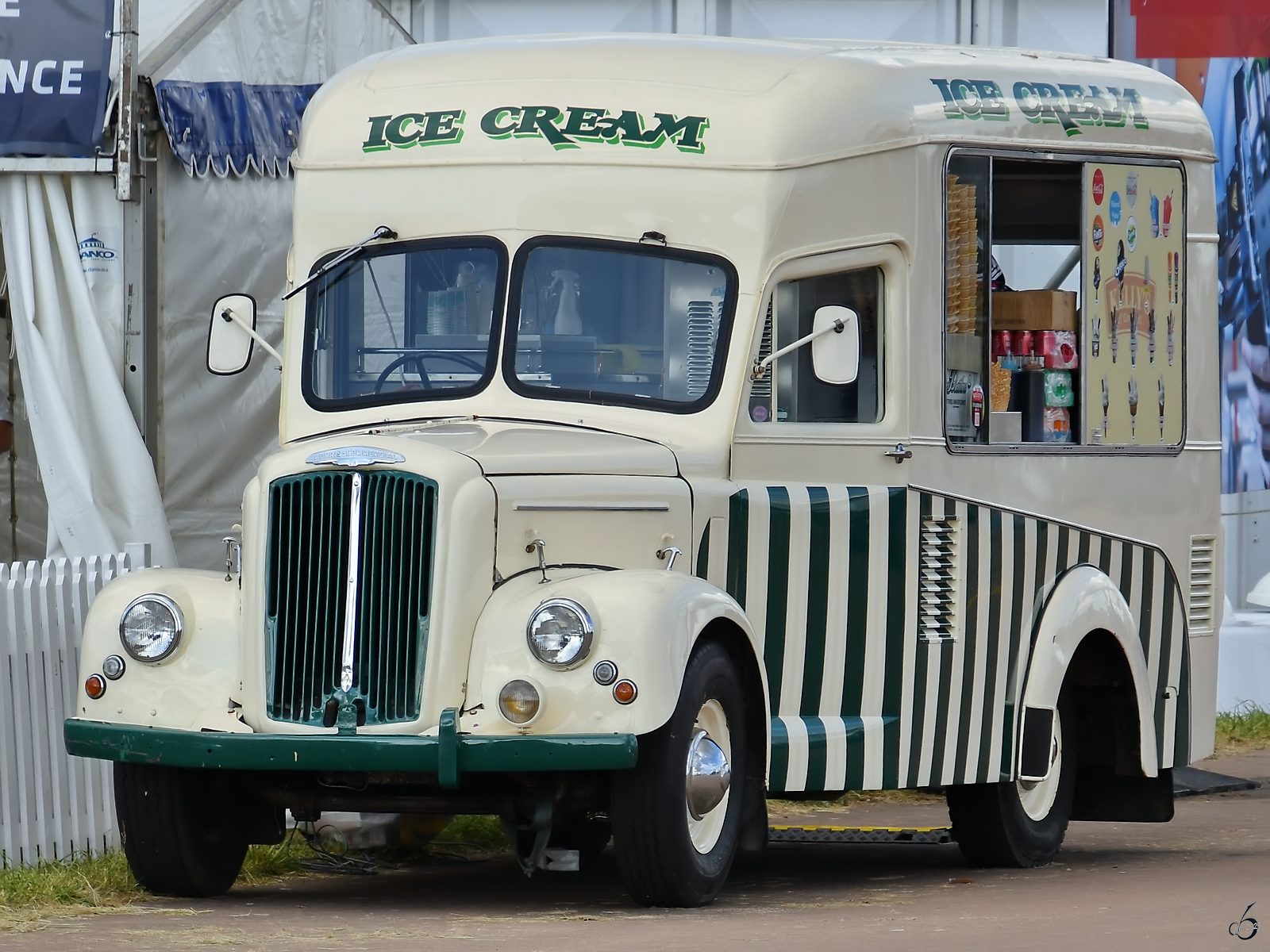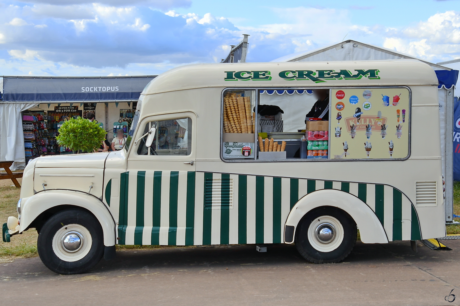 Dieser Morris Commercial LC5 aus den 50er Jahren des letzten Jahrhunderts wird als Eisverkaufswagen genutzt. (Fairford, Juli 2025)