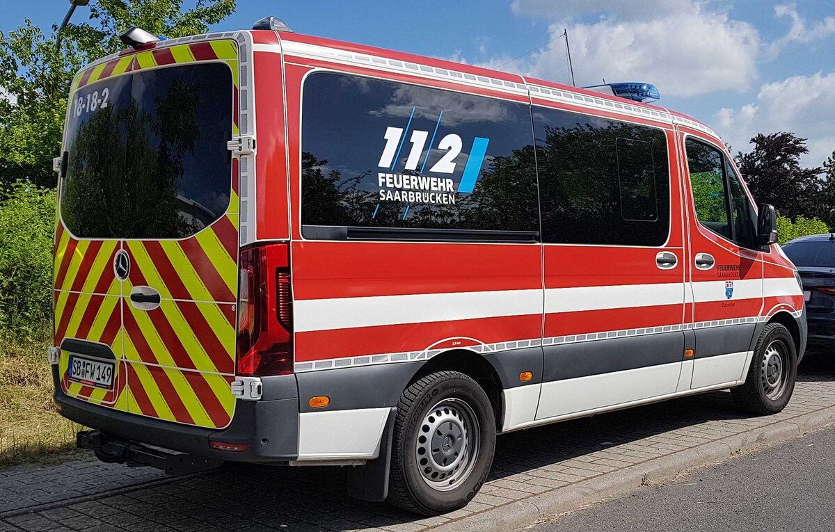 =MB Sprinter als MTW der Feuerwehr SAARBRÜCKEN - DUDWEILER, gesehen auf dem Parkplatzgelände der RettMobil 2025 in Fulda