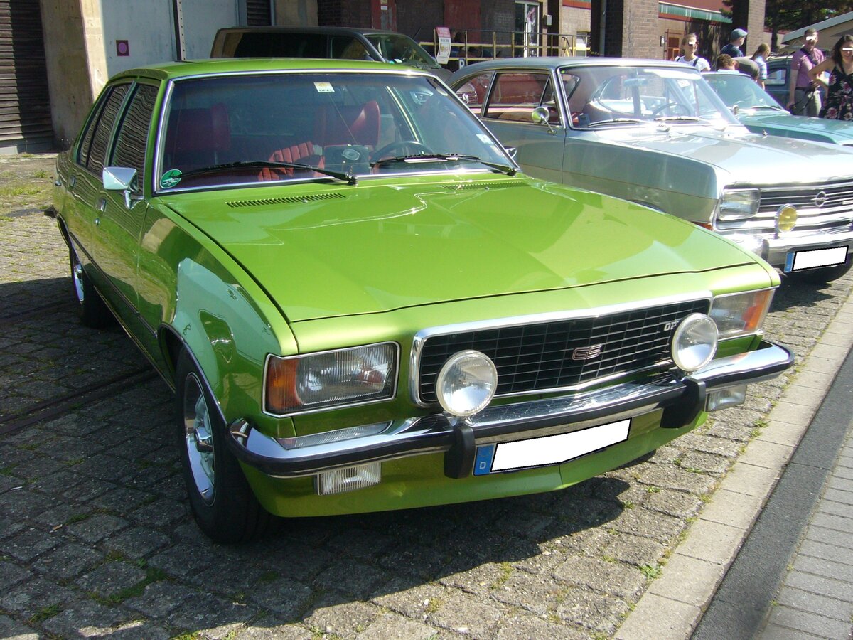 Opel Admiral B im Farbton chromgelb, gebaut von 1969 bis 1977. Die KAD-Baureihe (K apitän, A dmiral, D iplomat) stand ab März 1969 bei den Opel Händlern. Der Kapitän wurde bereits im Mai 1970 wieder eingestellt. Ab diesem Zeitpunkt war der Admiral das Basismodell dieser Baureihe. Ein solcher Admiral war bei seiner Markteinführung ab DM 14.720,00 zu haben. Der Sechszylinderreihenmotor hat einen Hubraum von 2874 cm³ und leistet 145 PS. Oldtimer-Revival auf dem Gelände der Kokerei Zollverein in Essen am 10.08.2025.