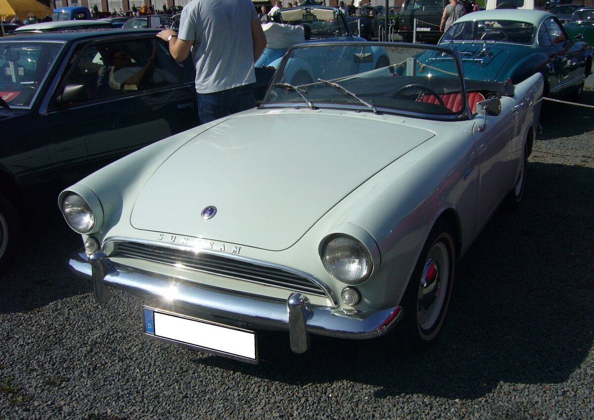 Sunbeam Alpine MK2 aus dem Jahr 1962. Der Sportzweisitzer Alpine wurde 1959 vorgestellt und bis 1968 in insgesamt fünf Baureihen produziert. Der gezeigte MK2 wurde in den Jahren 1960 bis 1962 produziert. Der Vierzylinderreihenmotor hat einen Hubraum von 1592 cm³ und leistet 80 PS. Oldtimer-Revival auf dem Gelände der Kokerei Zollverein in Essen am 10.08.2025.