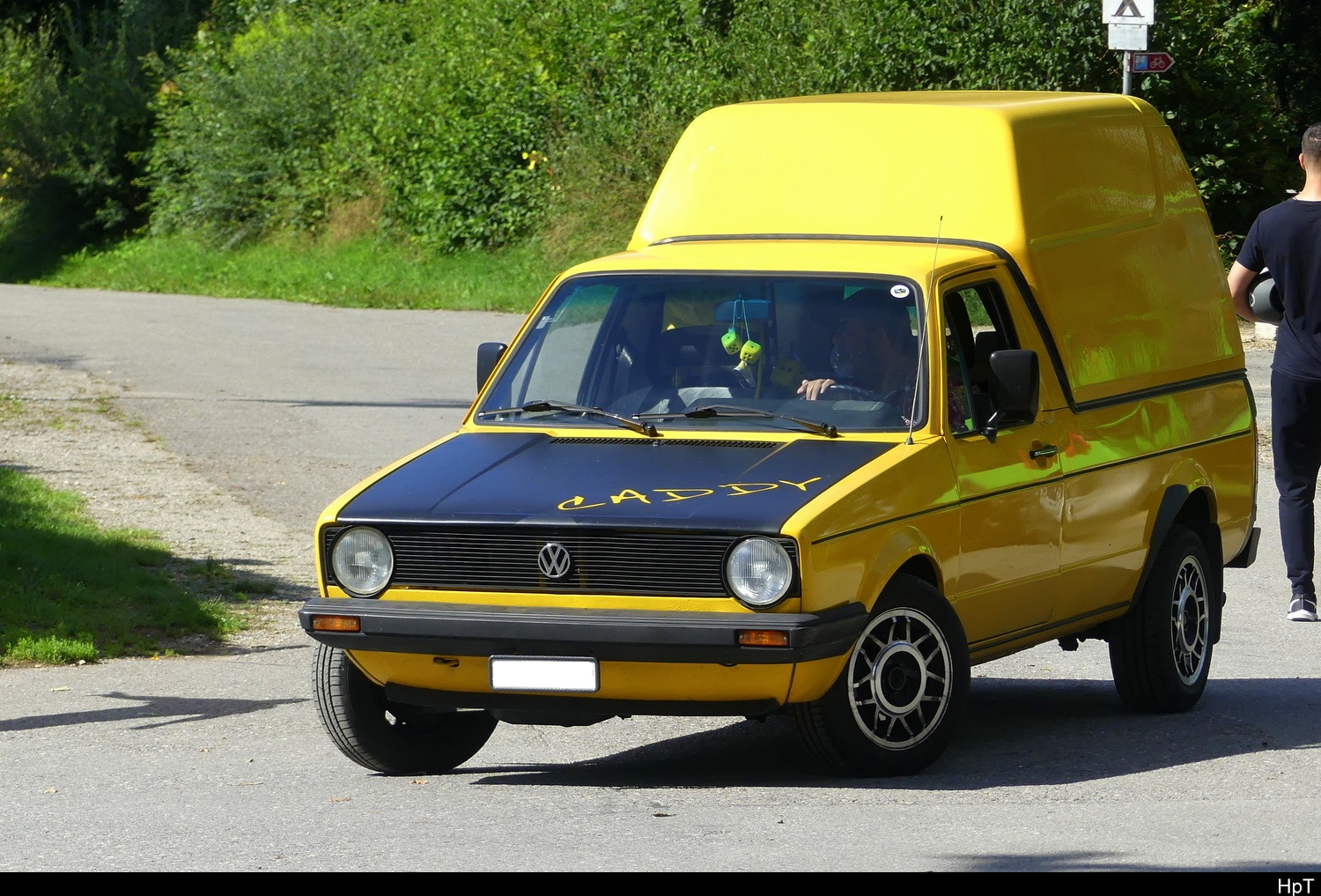 Gelb-Schwarzer VW Golf Caddy ex Schweizer Post zu Besuch am Bus & Oldtimertreffen vom 01-03.08.2025 in Orpund Bild vom am 03.08.2025