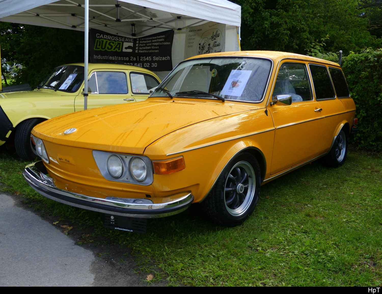 Oranger/Gelber VW Variant 412 LS zu Besuch am Bus & Oldtimertreffen vom 01-03.08.2025 in Orpund Bild vom am 03.08.2025