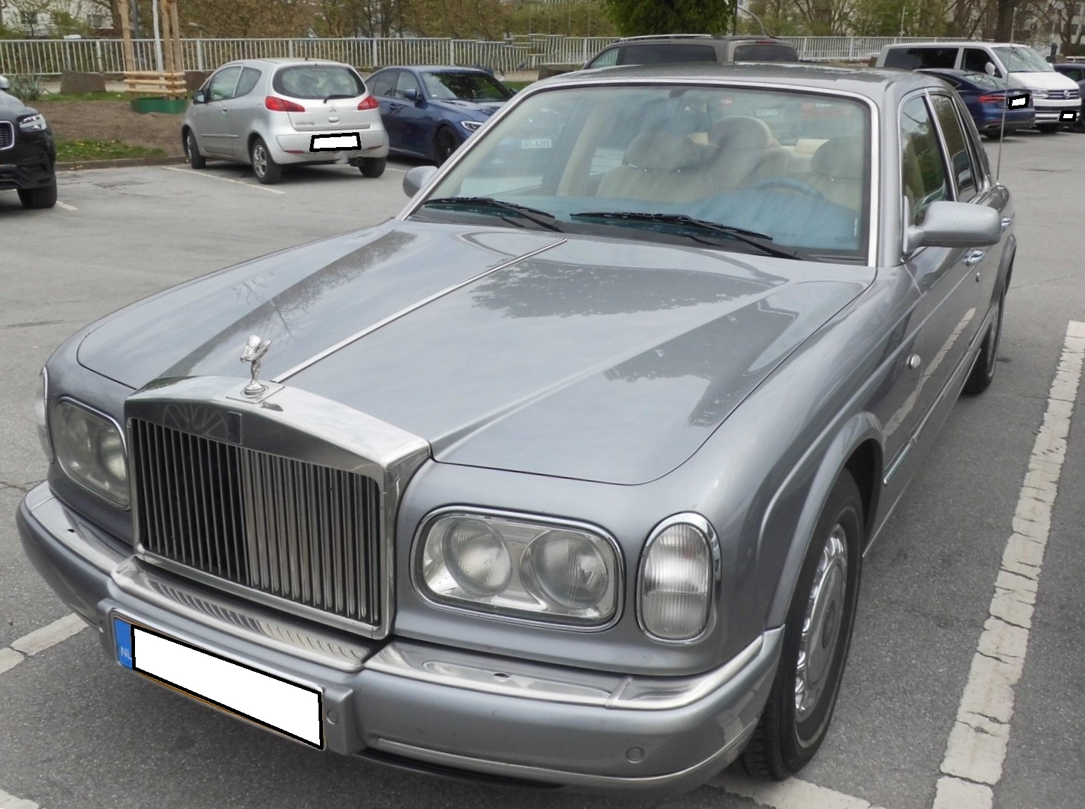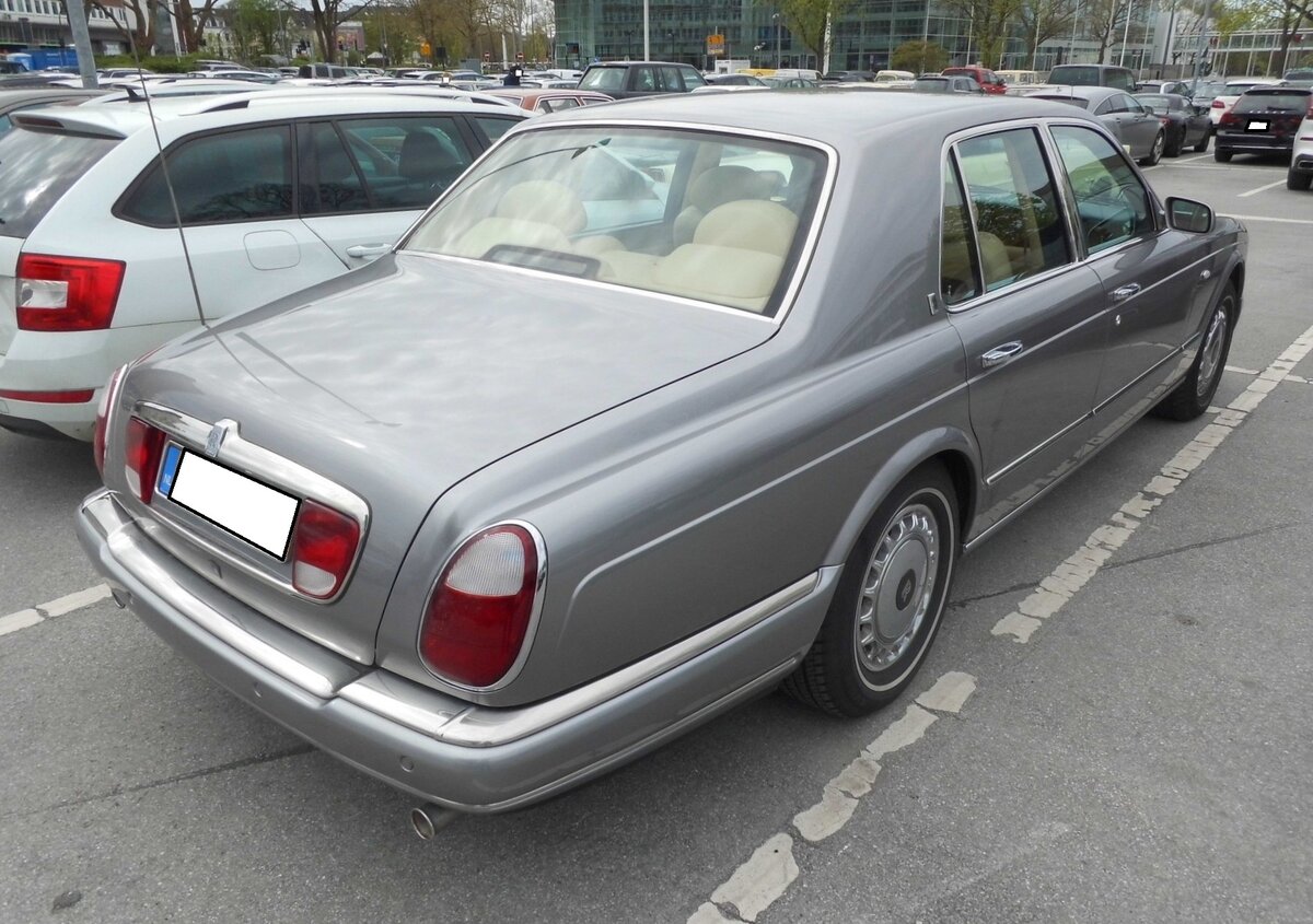 Rolls Royce Silver Seraph. Dieses Modell wurde in den Jahren von 1998 bis 2002 im Rolls Royce Werk Crewe/Cheshire vorwiegend in Handarbeit gebaut. Das Modell wird von einem V12-Motor angetrieben, der auch im BMW 750 dieser Periode für Vortrieb sorgte. Dieser Motor hat einen Hubraum von 5980 cm³ und leistet rund 430 PS. Besucherparkplatz der Techno Classica Essen am 10.04.2025.