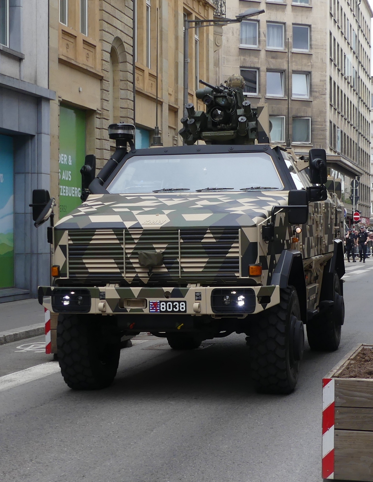 KMW Dingo in Tarnfarben, der luxemburgischen Armee, war bei der Militärparade in Luxemburg zum National Feiertag mit dabei. 23.06.2025