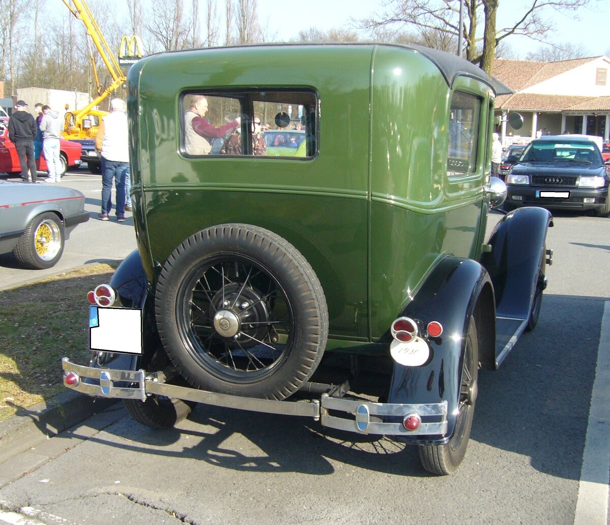 Heckansicht eines Ford Model A Tudor aus dem Jahr 1930. Oldtimerbrunch am Cafe del sol in Gelsenkirchen am 09.03.2025.