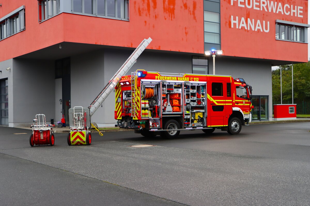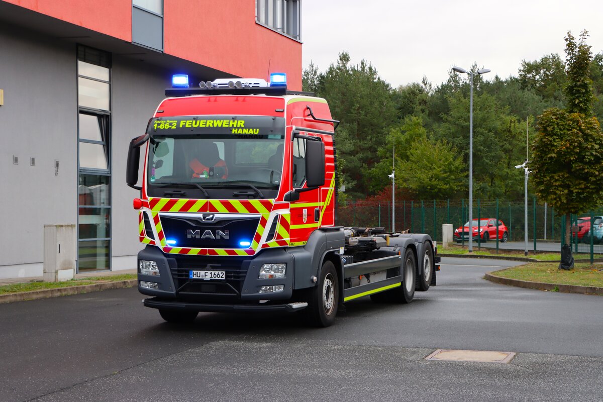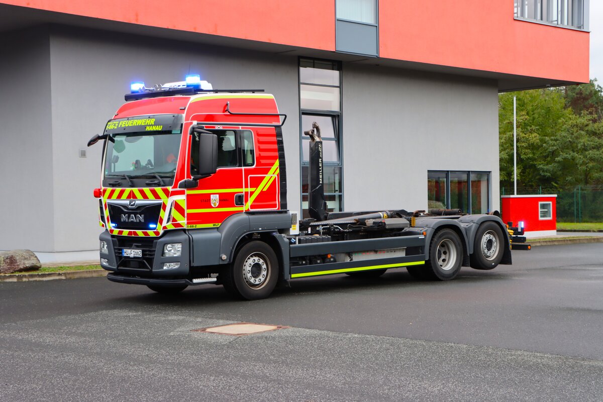 Feuerwehr Hanau Mitte MAN TGX WLF (Florian Hanau 1-66-2) am 04.10.25 bei einen Fototermin. Danke für das tolle Shooting