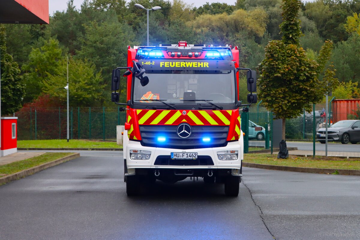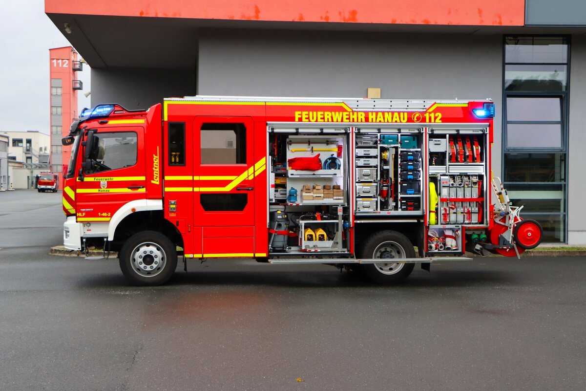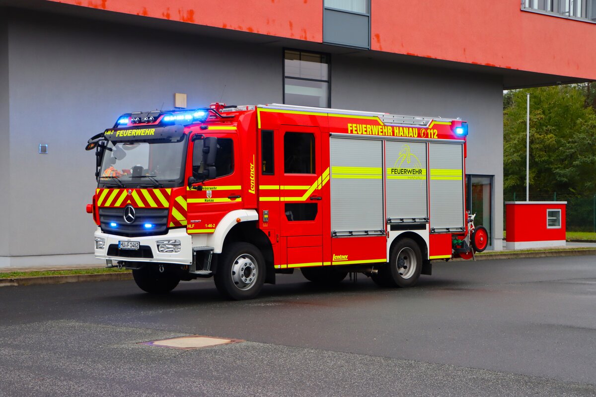 Feuerwehr Hanau Mitte Mercedes Benz Atego 1530 Lentner HLF 20/16 (Florian Hanau 1-46-2) am 04.10.25 bei einen Fototermin. Danke für das tolle Shooting