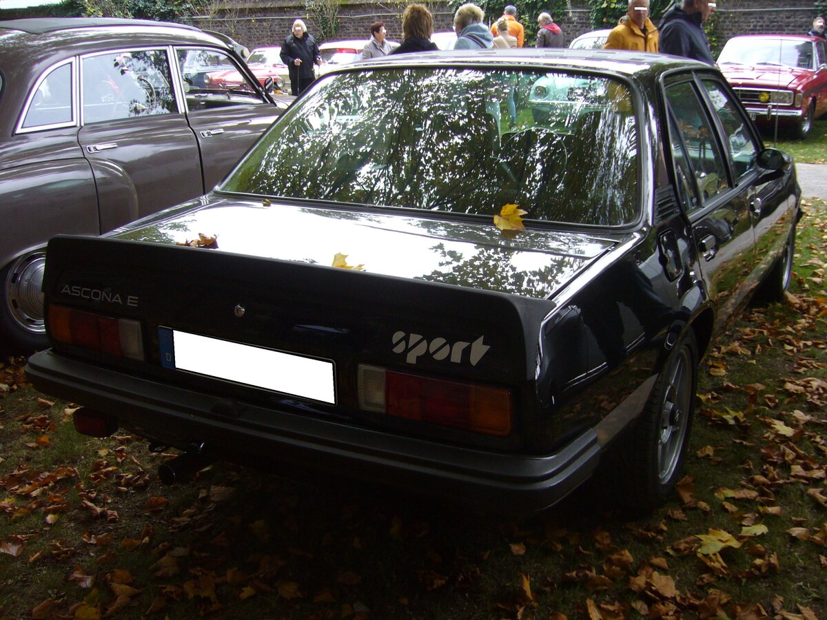 Opel Ascona B Sport. Dieses Sondermodell des 1975 vorgestellten Ascona B, stand nur im Jahr 1980 in den Verkaufsprospekten der Rüsselsheimer. Der Vierzylinderreihenmotor mit einer Bosch L-Jetronic Benzineinspritzung hat einen Hubraum von 1998 cm³ und leistet 110 PS. Die Höchstgeschwindigkeit wurde mit 187 km/h angegeben. Oldtimertreffen am Theater an der Niebu(h)rg am 19.10.2025 in Oberhausen/Rheinland.