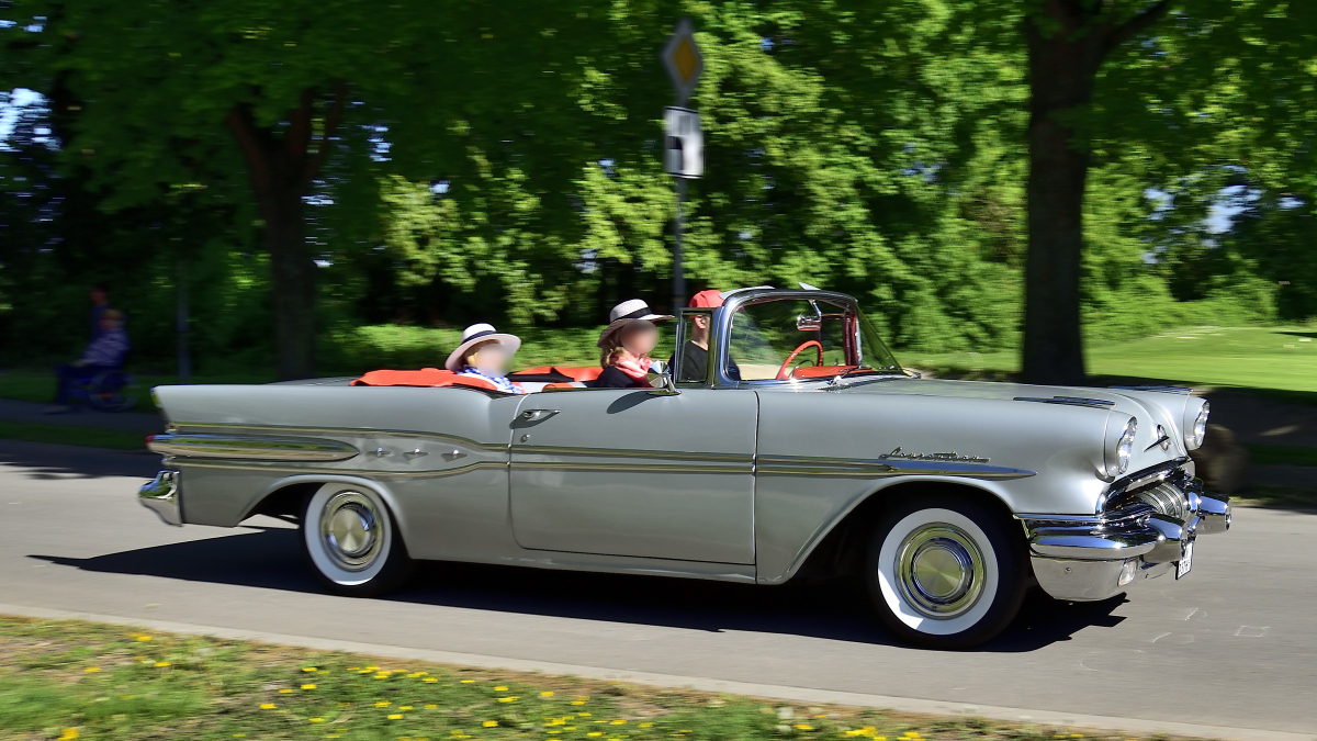 Pontiac Star Chief Cabrio, mitgezogen am 1. Mai 2025 auf der Zufahrt zum Oldtimer Frühlingserwachen beim Sportpark Loherhof Geilenkirchen