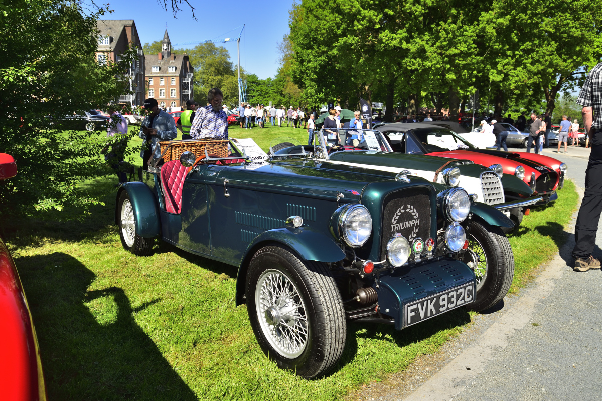 Triumph Herald, Umbau zum Burlington Arrow, gesehen am 1. Mai 2025 auf der Zufahrt zum Oldtimer Frühlingserwachen beim Sportpark Loherhof Geilenkirchen