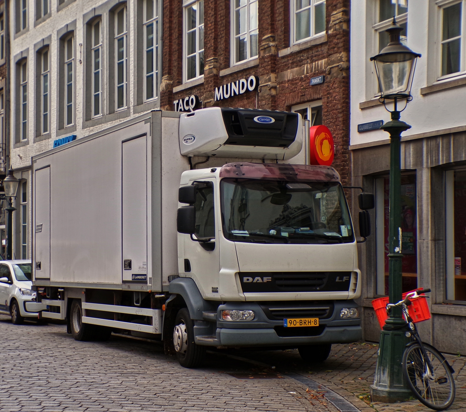 Sattelauflieger mit Kastenaufbau, eines Blumengroßhandels, gesehen in den Straßen von Maastricht. 10.2025