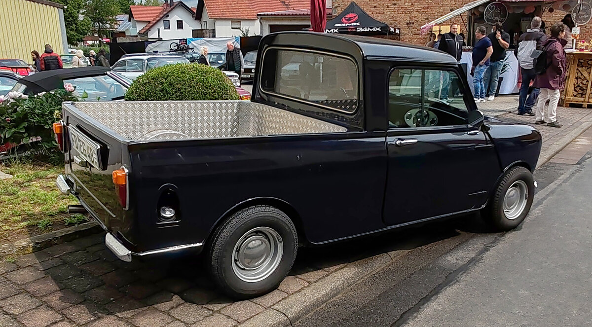 =Austin Mini als PickUp, gesehen beim Ortsjubiläum 1000 Jahre Großenbach im Juni 2025