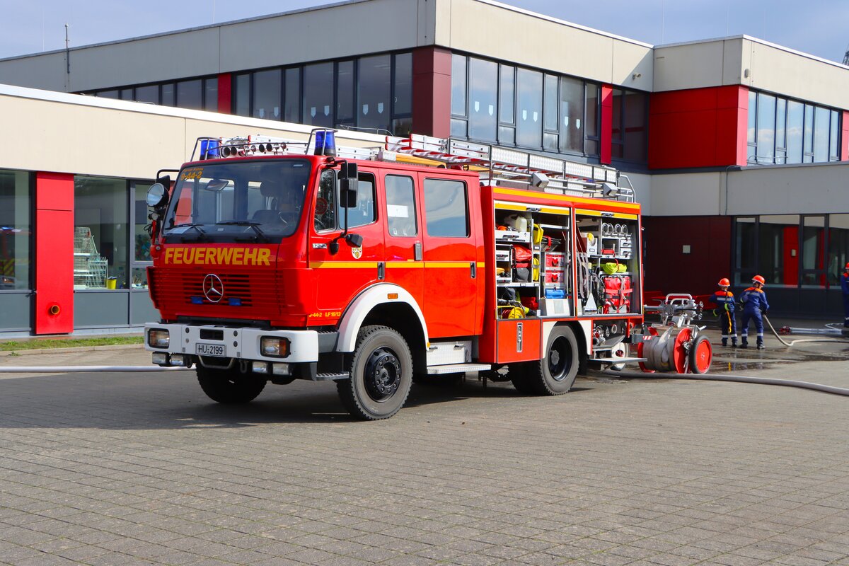 Feuerwehr Hanau Mercedes Benz LF16/12 bei der Jugendfeuerwehr Hanau Abschlussübung im September 2025 an der Otto Hahn Schule in Kesselstadt