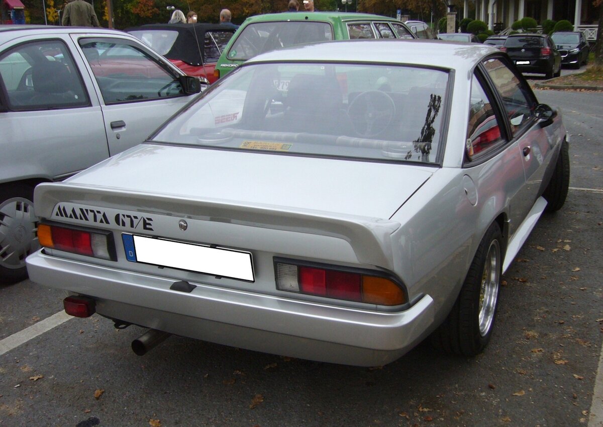 Heckansicht eines Opel Manta B 2.0E GT/E im Farbton astrosilber. Oldtimertreffen am Cafe del Sol in Gelsenkirchen am 12.10.2025.