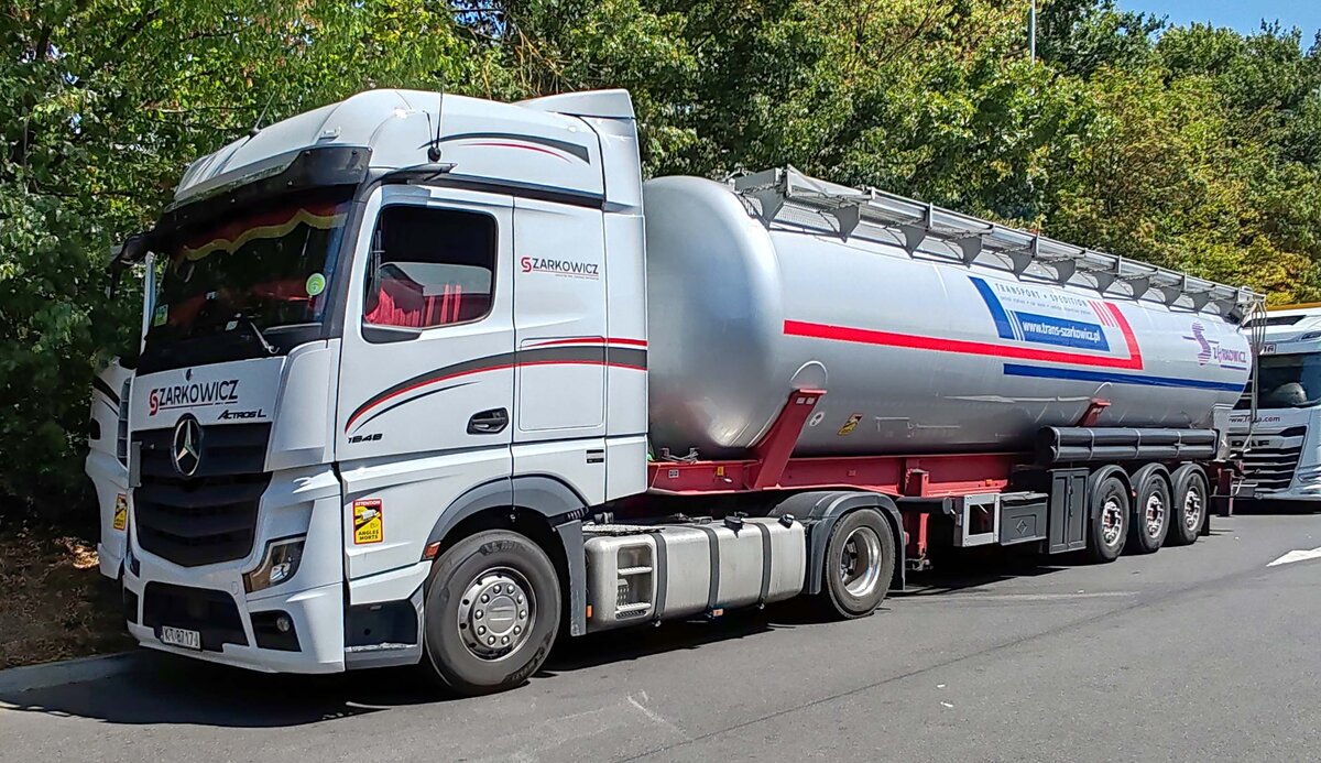=MB Actros l-Tanksattelzug der Spedition SZARKOWICZ hat Fahrerpause nahe der A 7 im Juli 2025