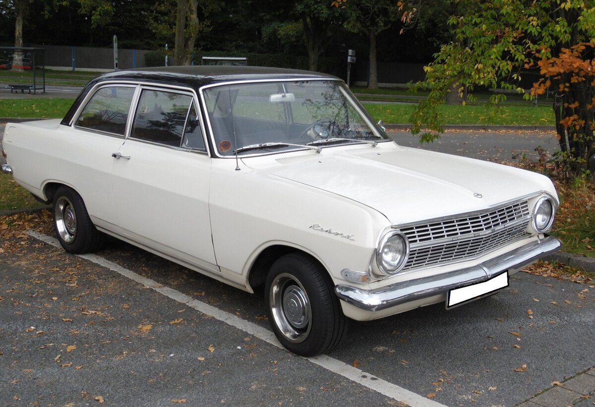 Opel Rekord A in der Karosserieversion zweitürige Limousine. Produziert wurde das Modell von 1963 bis 1965. Bei diesem Modell konnte man die Verwandtschaft zum GM-Konzern klar erkennen. Die Karosserie hat Ähnlichkeit mit einem "geschrumpften" Chevy II. Für dieses Modell waren etliche Motorisierungen lieferbar: 1.5l mit 55 PS, 1.7l mit 60 PS oder 67 PS und sogar ein Sechszylinderreihenmotor mit 2605 cm³ Hubraum und 100 PS. Der abgelichtete Wagen ist ein 1700´er aus dem Jahr 1963 in der Farbkombination dolomitbeige/schwarz. Der Vierzylinderreihenmotor leistet 67 PS aus einem Hubraum von 1680 cm³. Oldtimertreffen am Cafe del Sol in Gelsenkirchen am 12.10.2025.