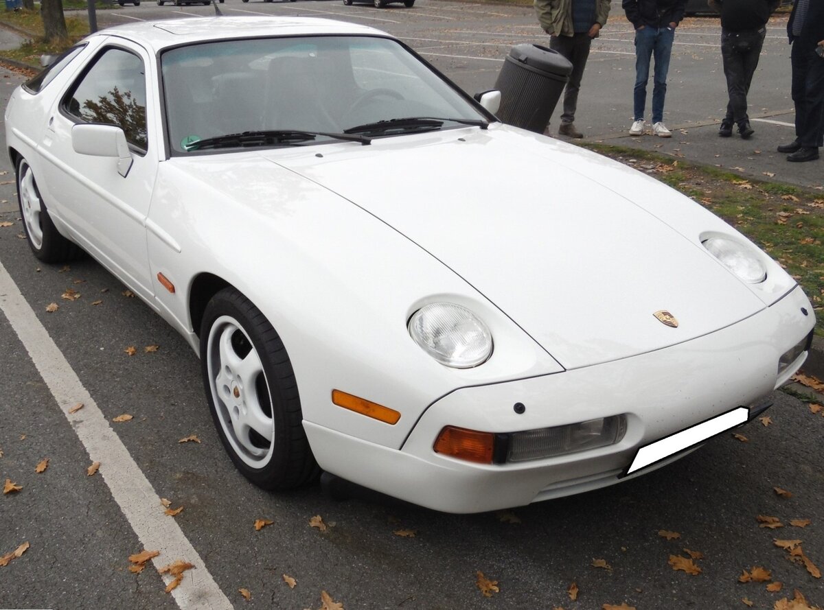 Porsche 928 GT im Farbton grandprix weiß, gebaut in den Jahren von 1989 bis 1991. Bereits Ende 1977 brachten die Zuffenhausener den 928´er, als angedachten Nachfolger für den Porsche 911, auf den Markt. 1987 wurde die Produktpalette um den komfortorientierten 928 S4 erweitert. Noch zwei Jahre später wurde der gezeigte 928 GT mit in die Modellpalette aufgenommen. Der 928 GT war grundsätzlich nur mit Schaltgetriebe lieferbar. Der V8-Motor hat einen Hubraum von 4957 cm³ und leistet 330 PS. Die Höchstgeschwindigkeit wurde damals mit 275 km/h angegeben. Oldtimertreffen am Cafe del Sol in Gelsenkirchen am 12.10.2025.