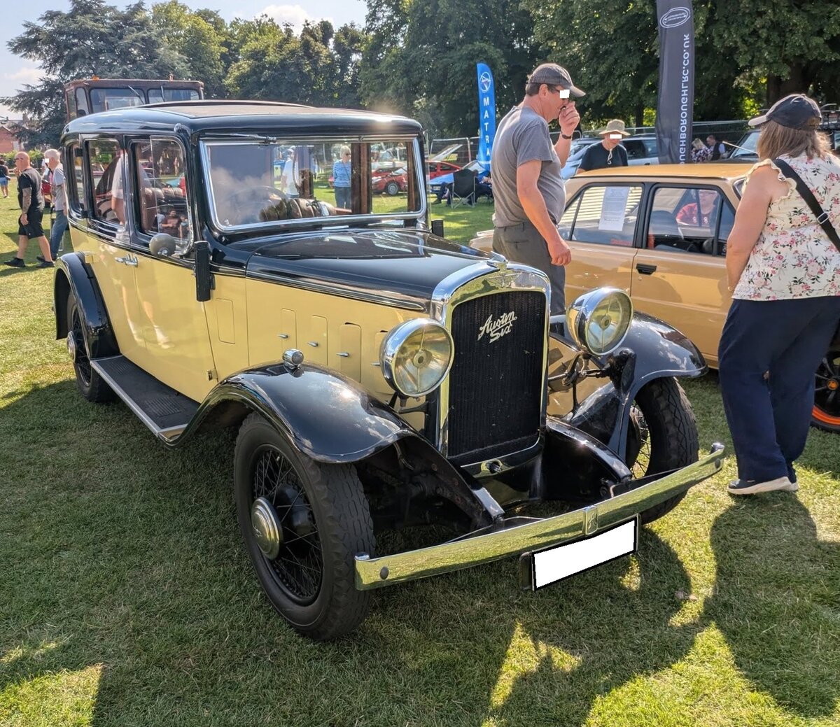 Austin Twelve-Six. Von 1931 bis zur Produktionseinstellung im Jahr 1937 verließen 30.316 Austin Twelve-Six in sieben Karosserieversionen das Werk. Das gezeigte Fahrzeug in der Karosserievariante Factory Saloon wurde 1934 erstmalig zugelassen. Der Sechszylinderreihenmotor hat einen Hubraum von 1496 cm³ und leistet rund 24 PS. Classic car meeting in Melton Mowbray/GB am 10.08.2025.