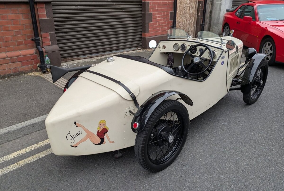 Heckansicht eines Austin 7 Ulster namens "Jane" aus dem Jahr 1932. Classic car meeting in Brynmawr/South Wales am 27.07.2025.