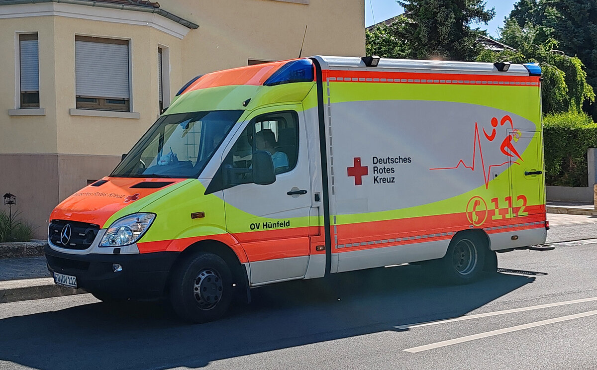 =MB Sprinter als Rettungsdienstfahrzeug des DRK OV Hünfeld eingesetzt beim Festzug "100 Jahre Feuerwehr Hünfeld" im Juni 2025