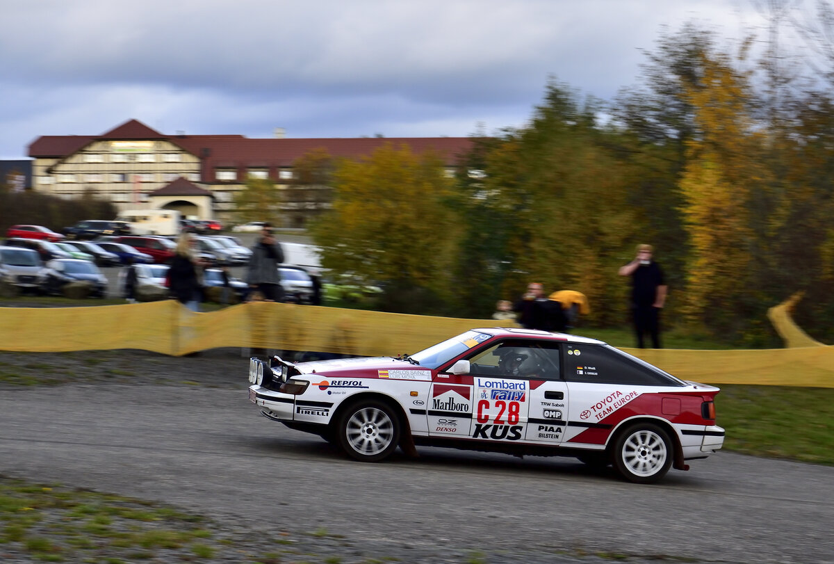 Mitzieher, Toyota Celica ST162 (1987), Weiss, Dietmar & Carvalho, Sandra. ADAC Rallye Köln-Ahrweiler. Demo am 8.11.2025. Parkplatz Kurs Müllenbach P3 des Nürburgring.