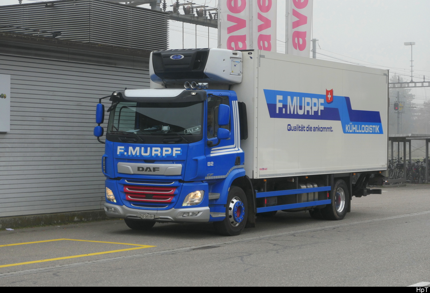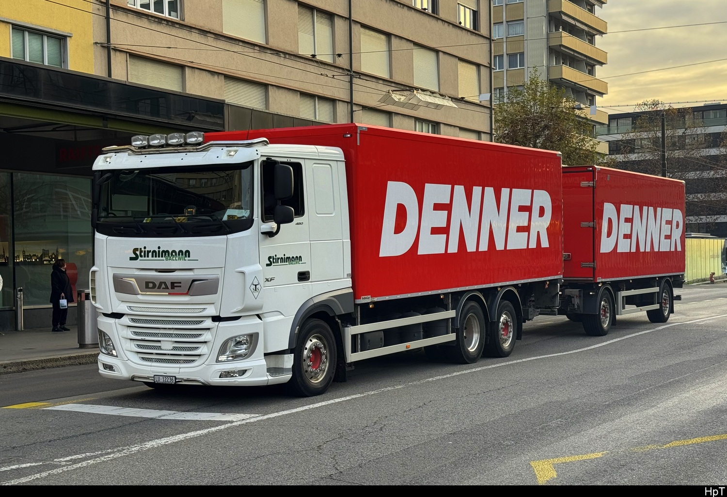 DAF mit Kastenaufbau und mit Anhänger unterwegs in der Stadt Biel am 13.11.2025