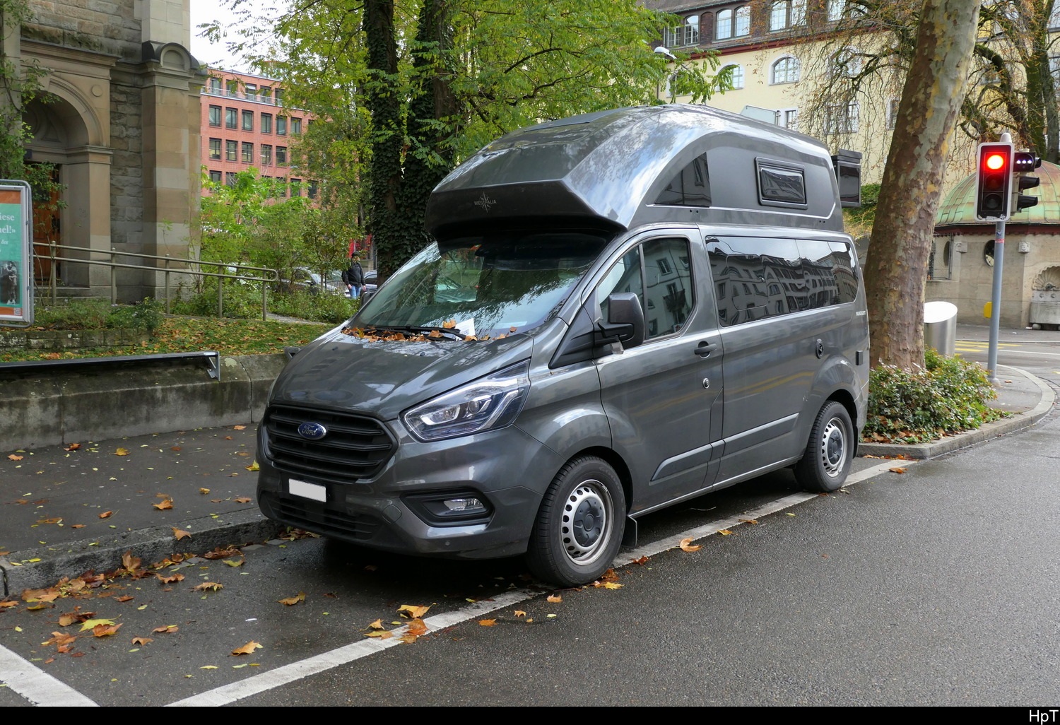 Ford Transit Custom Wohnmobil auf einem Parkplatz in der Stadt Zürich am 26.11.2025
