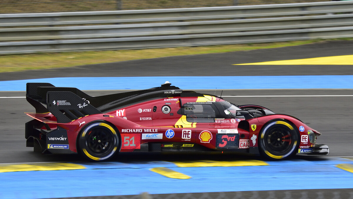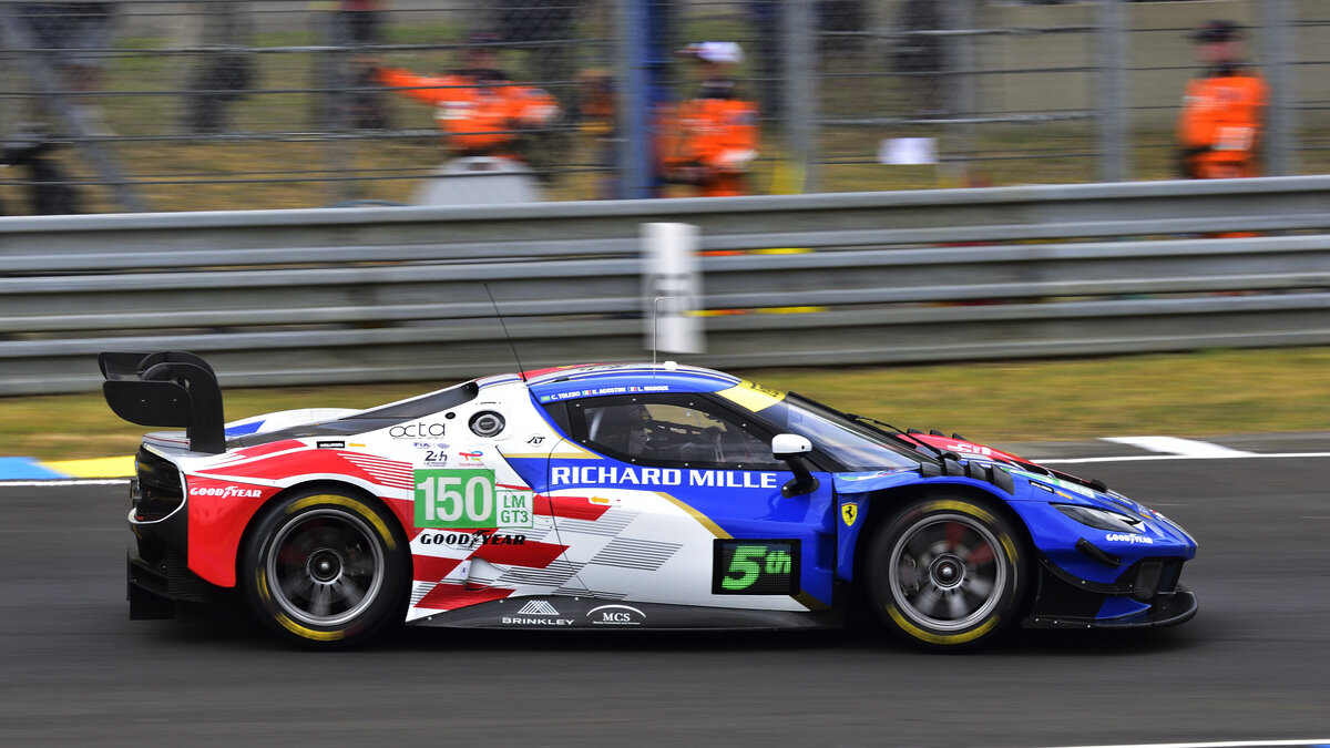 150 Ferrari 296 GT3, Richard Mille AF Corse, Fahrer: Custodio Toledo, Lilou Wadoux & Riccardo Agostini. Aufnahme: am Testtag der 24 Stunden von Le Mans 2025, am 8.Juni 2025