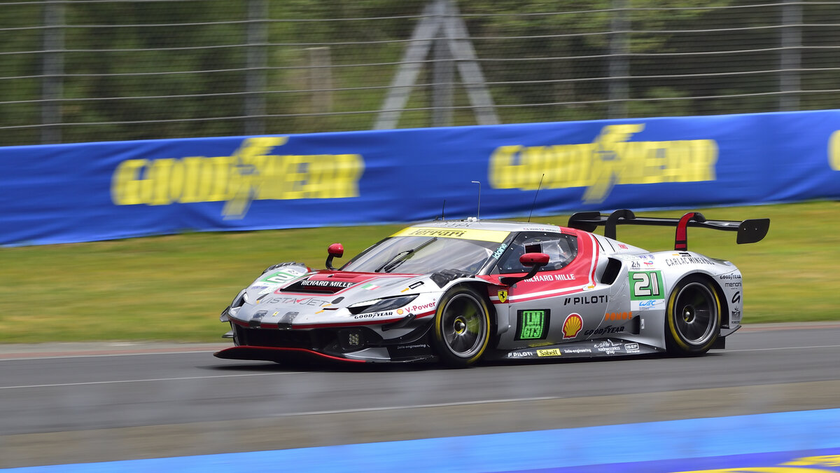 #21, Ferrari 296 GT3 LMGT3, Vista AF Corse, Fahrer: François Hériau, Simon Mann & Alessio Rovera. Aufnahme: am Testtag der 24 Stunden von Le Mans 2025, am 8.Juni 2025