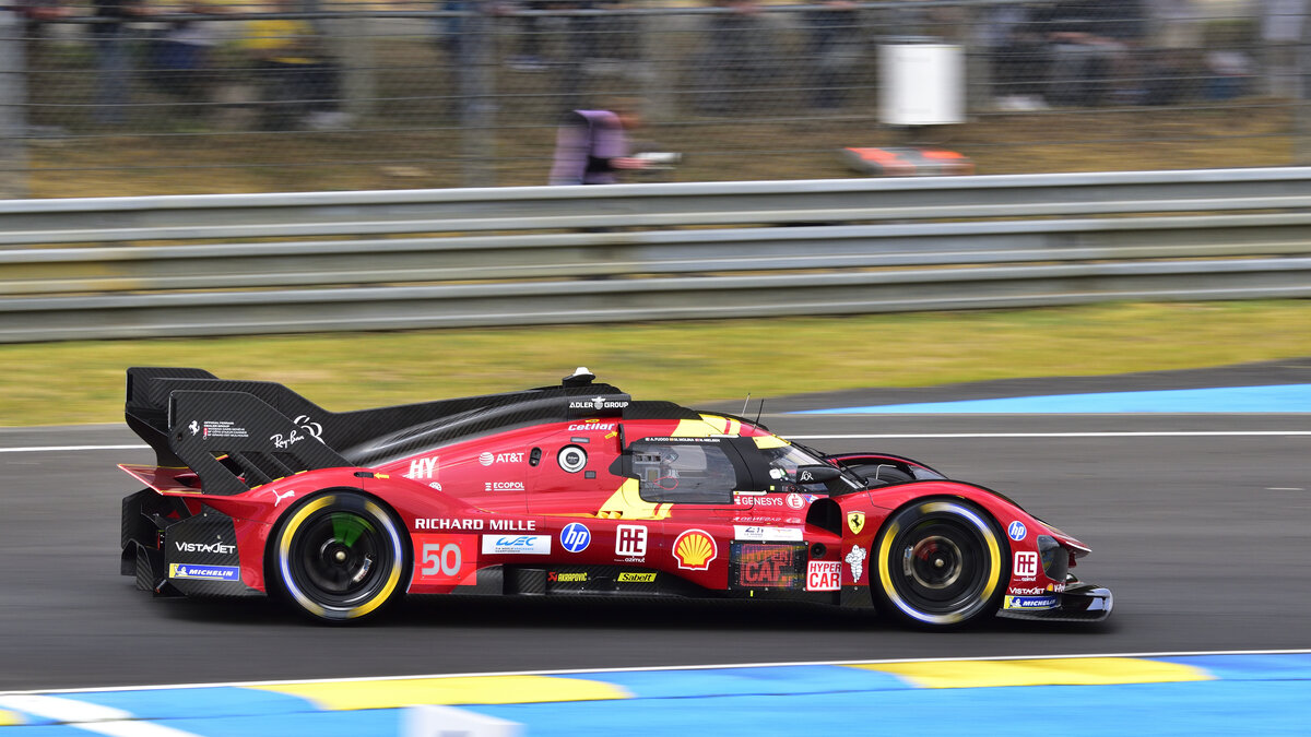 #50, Ferrari 499P HY, Ferrari AF Corse Fahrer: Antonio Fuoco, Miguel Molina & Nicklas Nielsen. Aufnahme: am Testtag der 24 Stunden von Le Mans 2025, am 8.Juni 2025