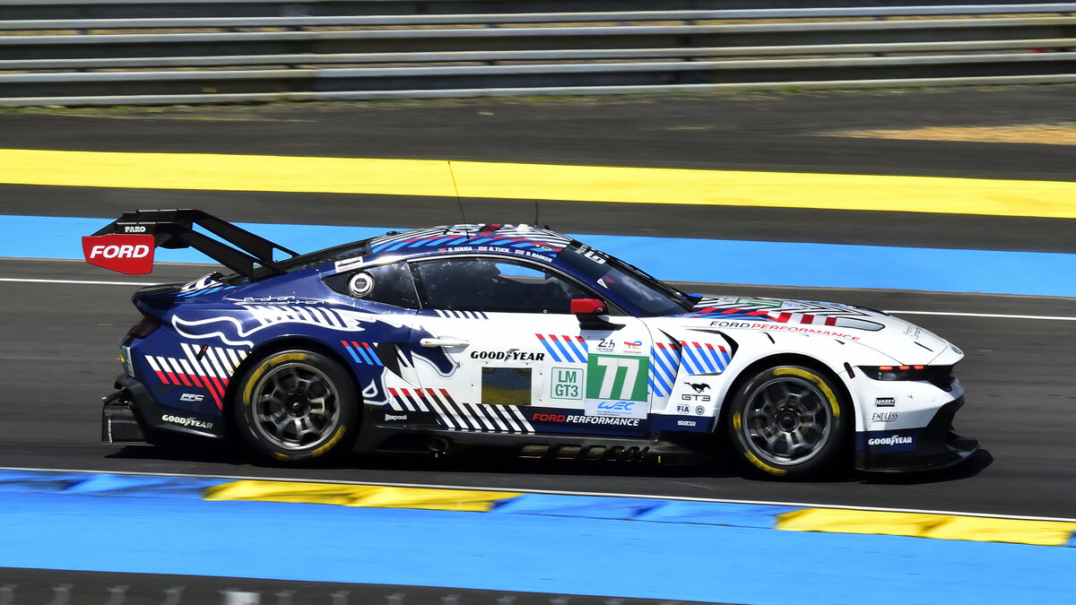 77 Ford Mustang GT3, Proton Competition Fahrer: Bernardo Sousa, Ben Tuck & Ben Barker. Aufnahme: während dem Freien Training der 24 Stunden von Le Mans 2025, am 11.Juni 2025