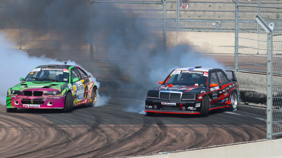BMW M3 und Mercedes Benz E30 beim Driftmasters Grand Prix in Ferropolis (Gräfenhainichen) am 14.08.25 auf der Rennstrecke