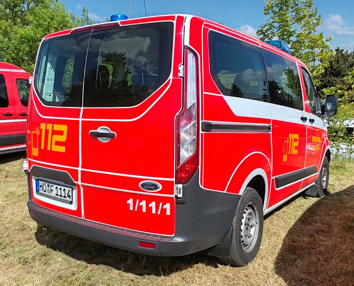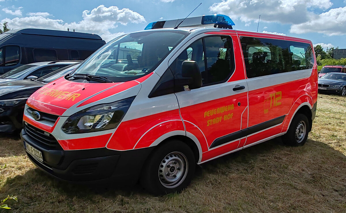 =Ford Transit Custom als Mehrzweckfahrzeug der Feuerwehr der Stadt HOF, abgestellt auf dem Parkplatz der 2025er Rettmobil in Fulda