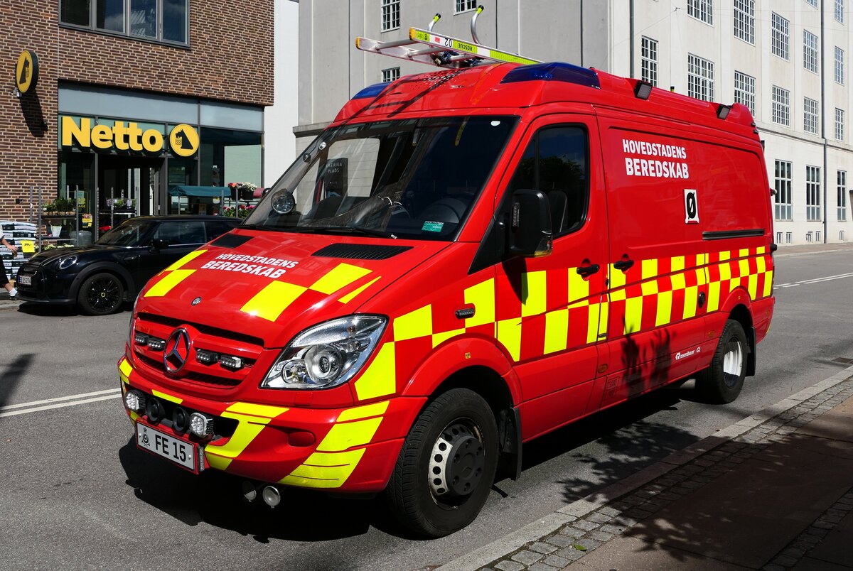 Hovedstadens Beredskab, MB 519 CDI Sprinter 'FE15' Einsatzfahrzeug (Fleksibelenhand). Kopenhagen Østerbro im Mai 2025.