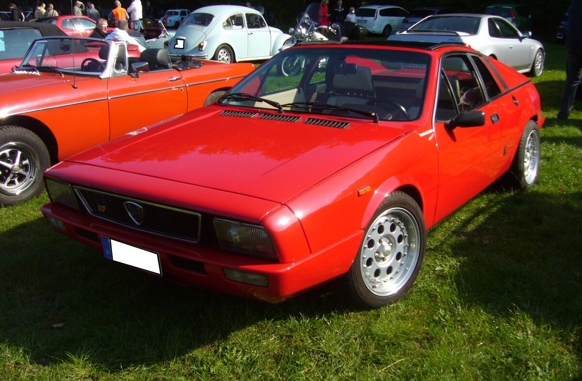 Lancia Beta Montecarlo im Farbton rosso capanelle. Auf dem Genfer Salon des Jahres 1975 präsentierte Lancia neben dem Beta HPE auch den Montecarlo. Ein zweisitziges Mittelmotor-Coupe mit Heckantrieb. Das Auto trat die Nachfolge des Fulvia Coupe an und basierte auf dem Modell Beta. Den Vierzylinderreihenmotor hatten die Techniker quer vor die Hinterachse gesetzt. Die meisten Modelle wurden mit dem 1995 cm³ Motor und einer Leistung von 120 PS ausgeliefert. Ab 1976 gab es das Modell auch mit dem 1300´er Motor aus dem Beta Coupe. Die 1300´er wurden fast ausschließlich in seinem Heimatland Italien verkauft. Oldtimertreffen auf dem Gelände des Bikertreffs Mutter Vogel in Marl am 28.09.2025.