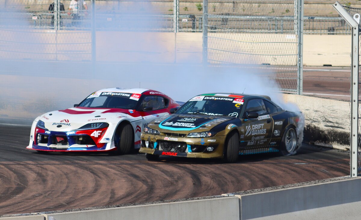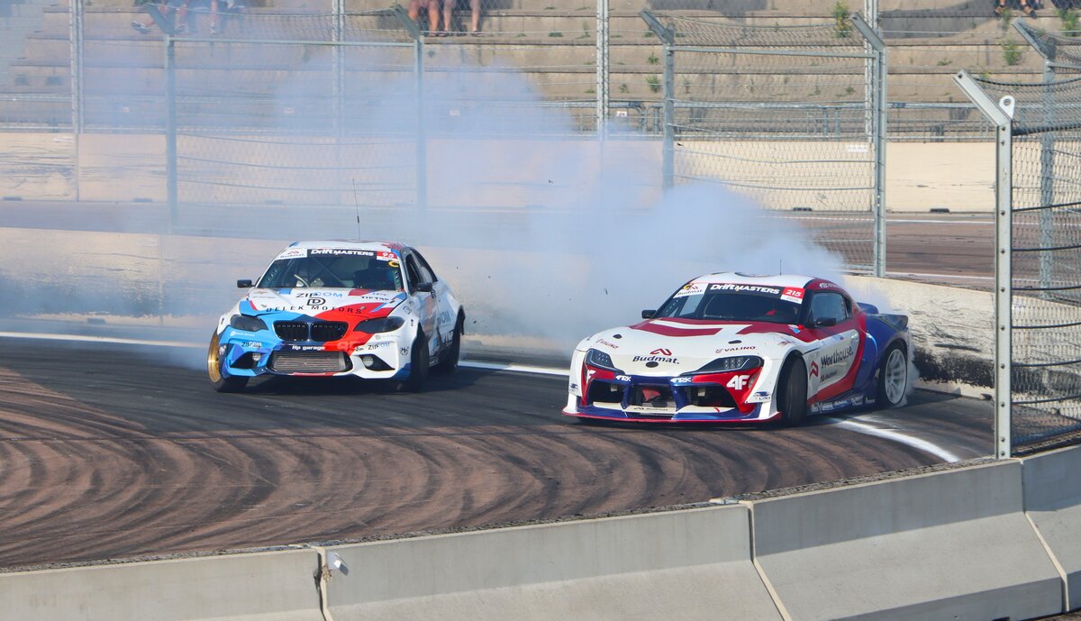 Toyota Supra und BMW M2 beim Driftmasters Grand Prix in Ferropolis (Gräfenhainichen) am 14.08.25 auf der Rennstrecke