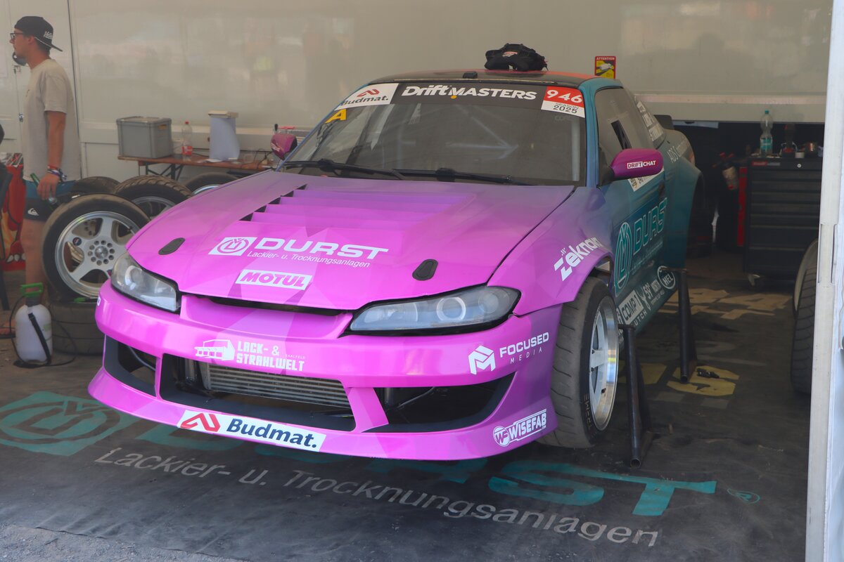 Nissan S14 beim Driftmasters Grand Prix Fahrerlager in Ferropolis (Gräfenhainichen) am 14.08.25