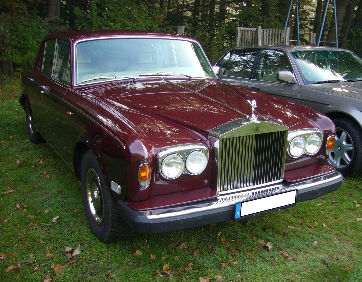 Rolls Royce Silver Shadow II, produziert von 1977 bis 1980. Als Silver Shadow wurde dieses Modell bereits im Jahr 1965 vorgestellt. Mit fast 29.000 verkauften Fahrzeugen in beiden Baureihen, war diese Baureihe bis in die 1980´er Jahre das meist verkaufte Modell der Edelmarke aus dem englischen Crewe (Grafschaft Cheshire). Der V8-Motor, dieser Limousine hat einen Hubraum von 6750 cm³ und leistet 201 PS. Der gezeigte Wagen, im Farbton cardinal red, wurde im Juli 1978 erstmalig in Kalifornien zugelassen. Dieses ist auch an den vorderen und hinteren, seitlichen, Begrenzungsleuchten zu erkennen. Laut dem heutigen Besitzer hat der Wagen damals einen Kaufpreis von 25.000,00 britischen Pfund, das entsprach damals ca. DM 120.000,00, gehabt. Oldtimertreffen auf dem Gelände des Bikertreffs Mutter Vogel in Marl am 28.09.2025.