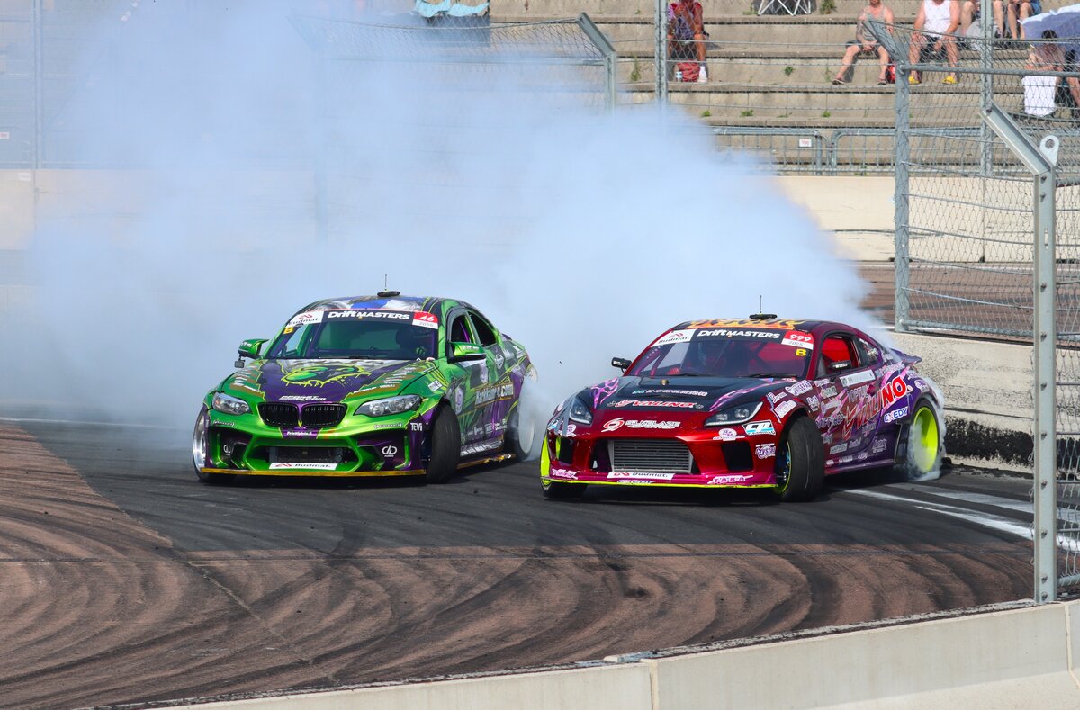 Toyota GT 68 und BMW M2 beim Driftmasters Grand Prix in Ferropolis (Gräfenhainichen) am 14.08.25 auf der Rennstrecke