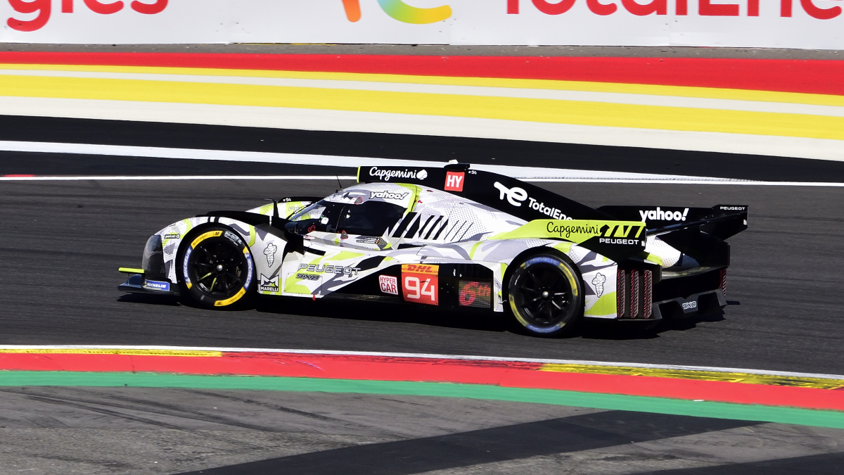 #94 Peugeot 9X8 (2024), Werksteam Peugeot TotalEnergies, Fahrer: Loïc Duval, Malthe Jakobsen & Stoffel Vandoorne, am 10. Mai 2025, auf dem Circuit de Spa-Francorchamps, dritte Wertungslauf der FIA-Langstrecken-Weltmeisterschaft 2025 statt.