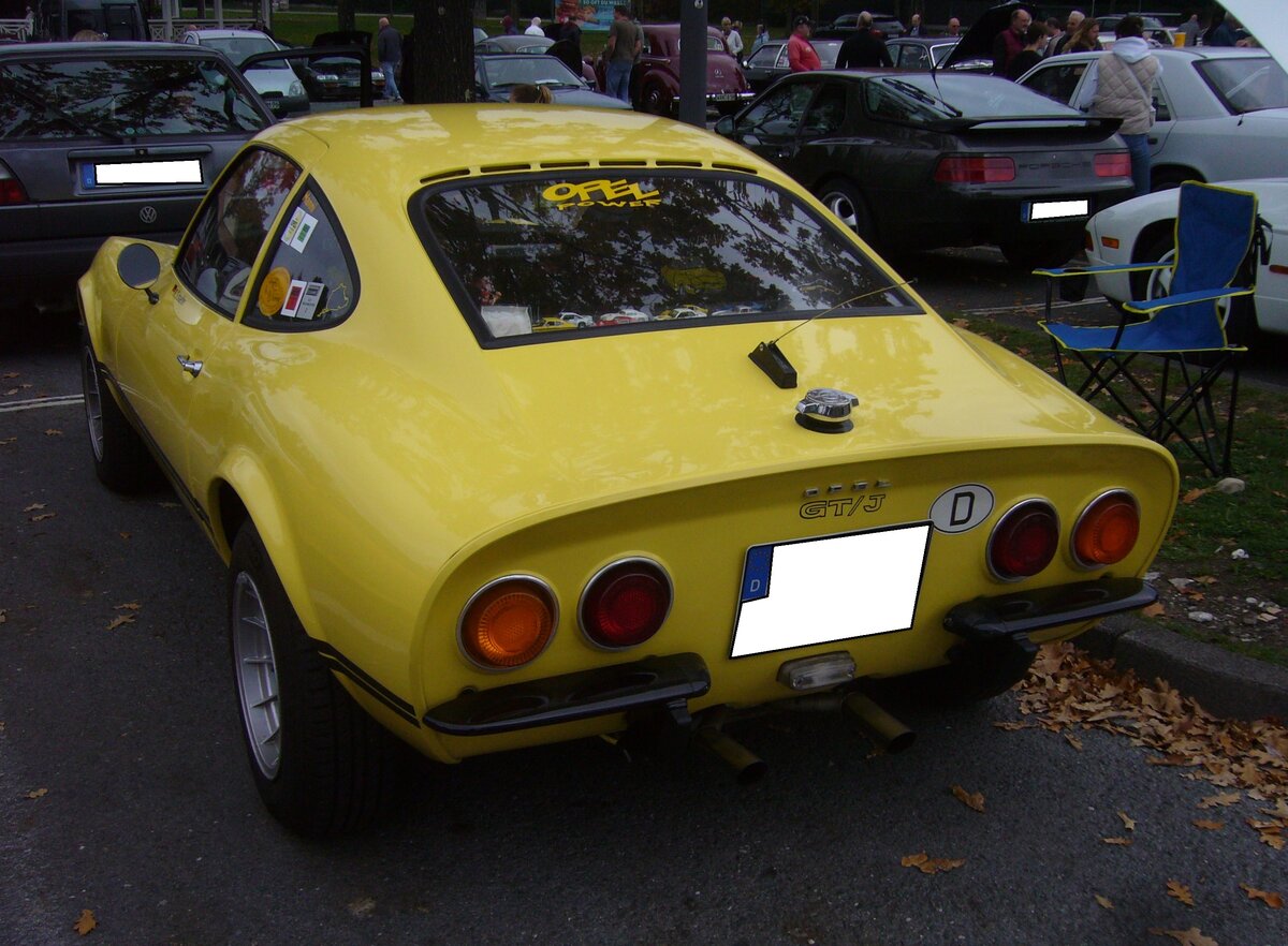 Heckansicht eines Opel GT/J aus dem Jahr 1973. Oldtimertreffen am Cafe del Sol in Gelsenkirchen am 12.10.2025.