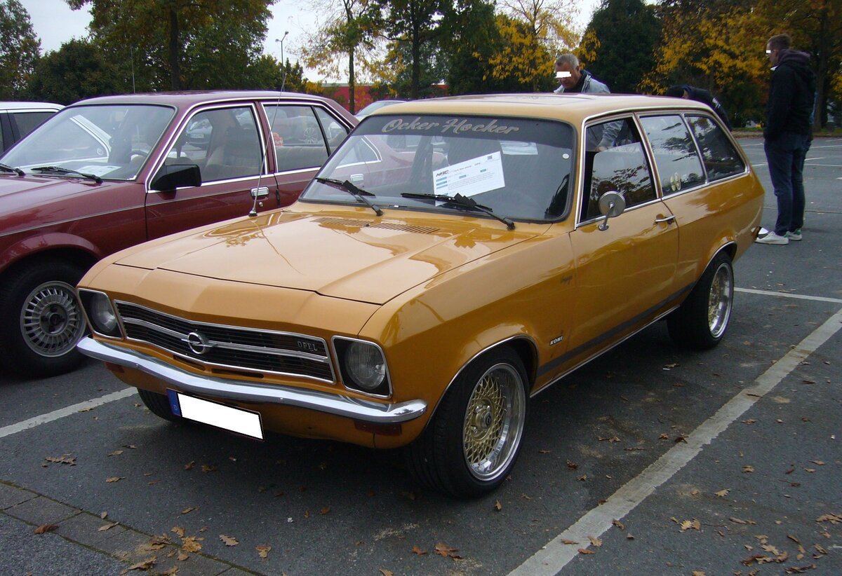 Opel Ascona A Voyage, produziert von 1970 bis 1975. Der Ascona A wurde 1970 als Aufsteiger-Modell für die bisherigen Kadett-Käufer platziert. Während die zwei- und viertürige Limousine in Deutschland und im europäischen Ausland zum Verkaufserfolg wurde, waren die Verkaufszahlen des, Voyage genannten Kombimodelles, hier eher bescheiden. Dafür verkaufte er sich in USA, wohin er ebenfalls exportiert wurde, sehr gut. Ein solcher Voyage kostete im Dezember 1970 in der Basisversion DM 8580,00. Lieferbar war das Auto mit zwei Vierzylinderreihenmotoren: 1584 cm³ Hubraum mit 60 PS, 68 PS, 75 PS und 80 PS oder 1897 cm³ Hubraum mit 88 PS oder 90 PS. Der gezeigte "Voyage" ist ein 1.6´er. Oldtimertreffen am Cafe del Sol in Gelsenkirchen am 12.10.2025.