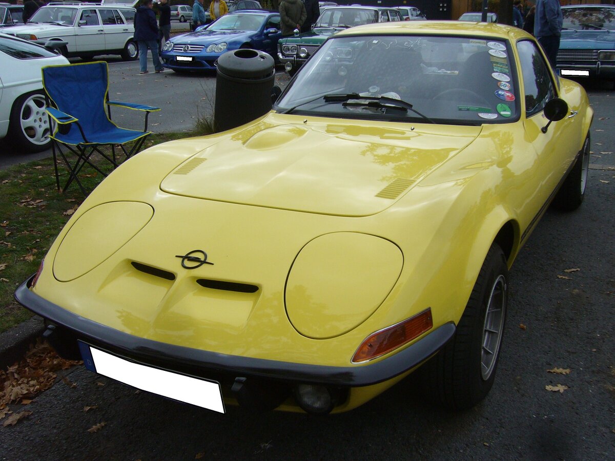 Opel GT/J aus dem Jahr 1973. Produziert wurde das Sportcoupe von 1968 bis 1973. Die Karosserie des GT wurde bei der Firma Brissoneaux & Lotz im französischen Nantes gefertigt und zur Endmontage nach Bochum geliefert. In den ersten drei Produktionsjahren konnte man den GT auch mit dem 1.1l Motor aus dem Kadett ordern. Da sich aber nur 3.573 Kunden für den schwachbrüstigen 1100´er entschieden, wurde er im Jahr 1970 aus dem Programm genommen. Ab diesem Zeitpunkt gab es nur noch den 90 PS starken Vierzylinderreihenmotor mit einem Hubraum von 1897 cm³. Ab März 1971 ergänzte das Modell GT/J die Produktpalette. Bei diesem Modell waren, alle sonst verchromten Bauteile, mattschwarz eingefärbt. Diese Maßnahme sollte insbesondere, das junge, sportlich ausgerichtete Kundenklientel ansprechen. Oldtimertreffen am Cafe del Sol in Gelsenkirchen am 12.10.2025.