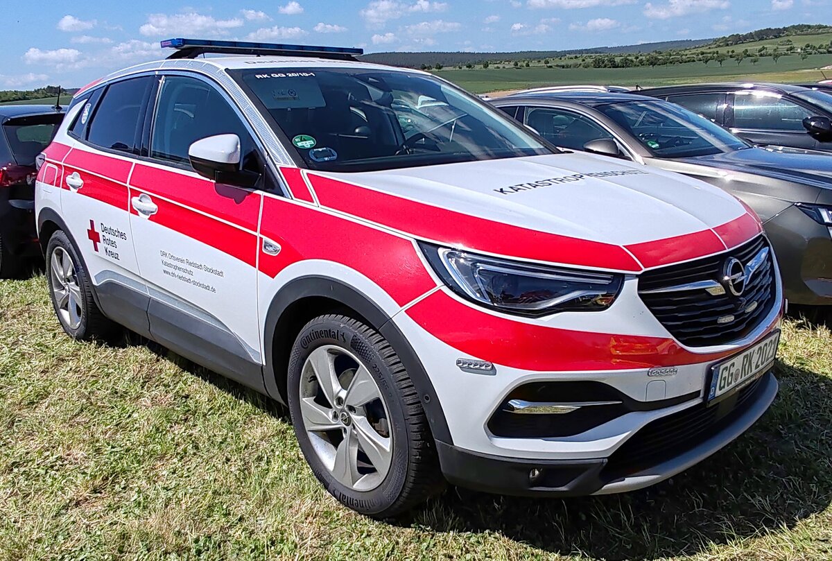 =Opel Mokka als Katastrophenschutzfahrzeug im Dienst des DRK OV RIEDSTADT-STOCKSTADT, gesehen auf dem Parkplatz der 2025er Rettmobil in Fulda