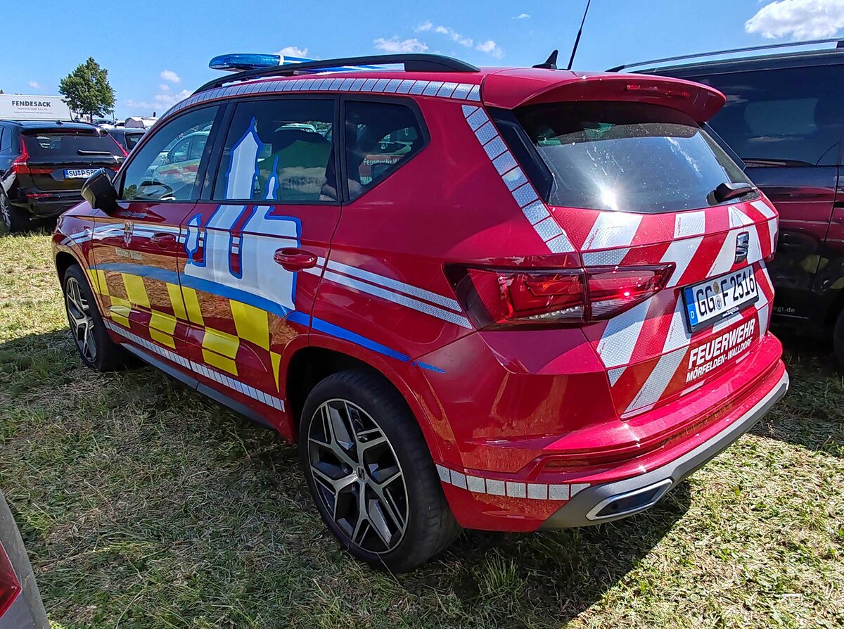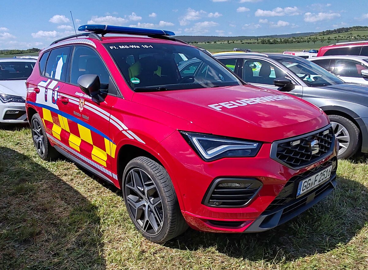 =Seat Ateca als Kommandowagen der Feuerwehr MÖRFELDEN-WALLDORF, gesehen auf dem Parkplatz der 2025er Rettmobil in Fulda