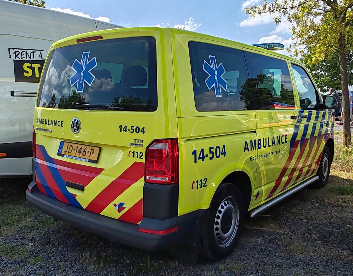 =VW T 6 als Einsatzfahrzeug einer niederländischen Ambulance, steht auf dem Parkplatz der 2025er Rettmobil in Fulda