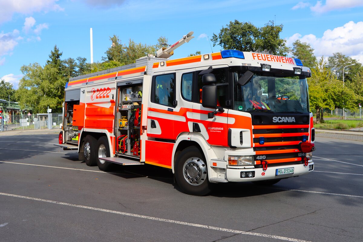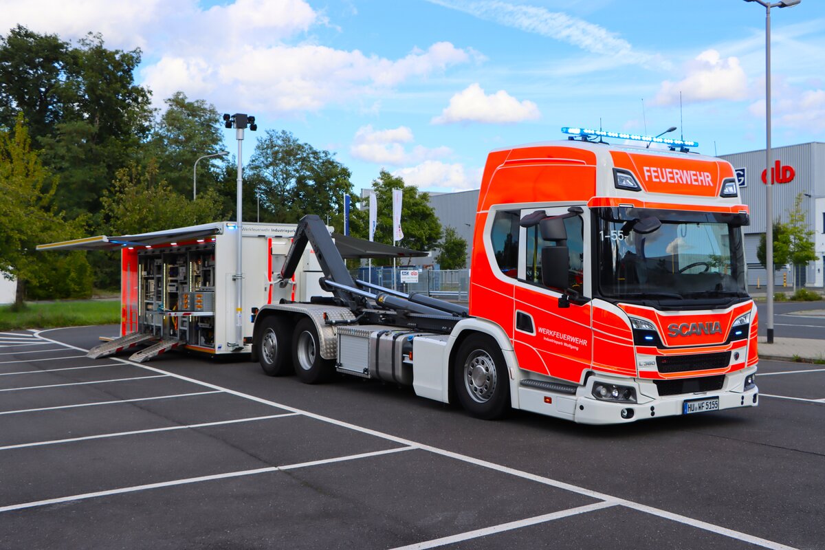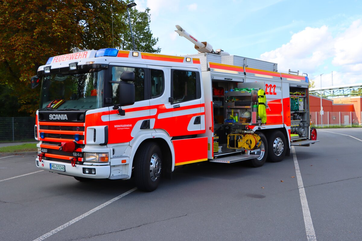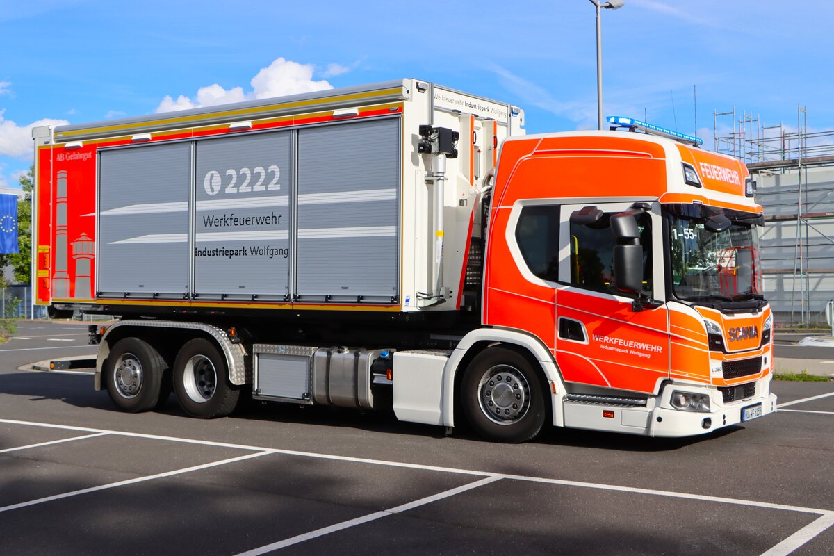 Werkfeuerwehr Industriepark Hanau Wolfgang Scania L360 WLF mit AB-Gefahrgut von GSF (Florian IPW 01-55-1) am 14.09.25 bei einen Fototermin. Danke für das tolle Shooting