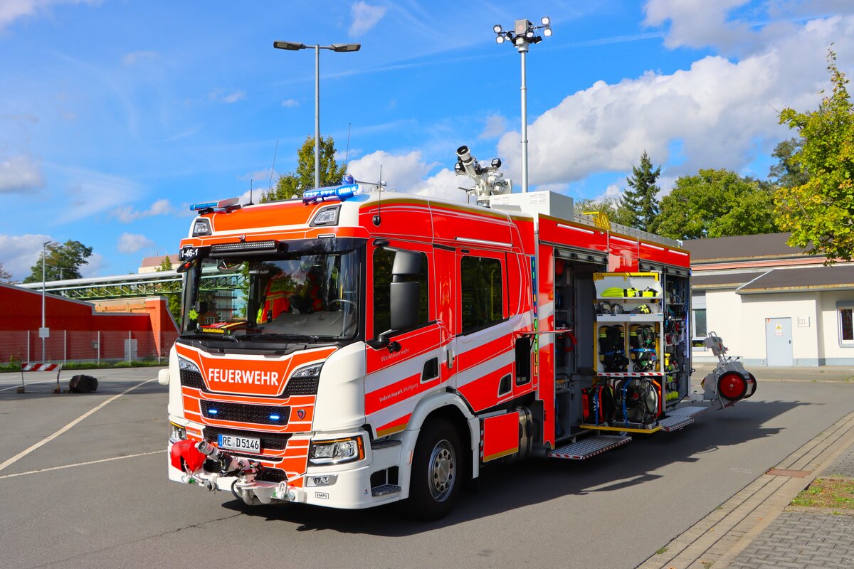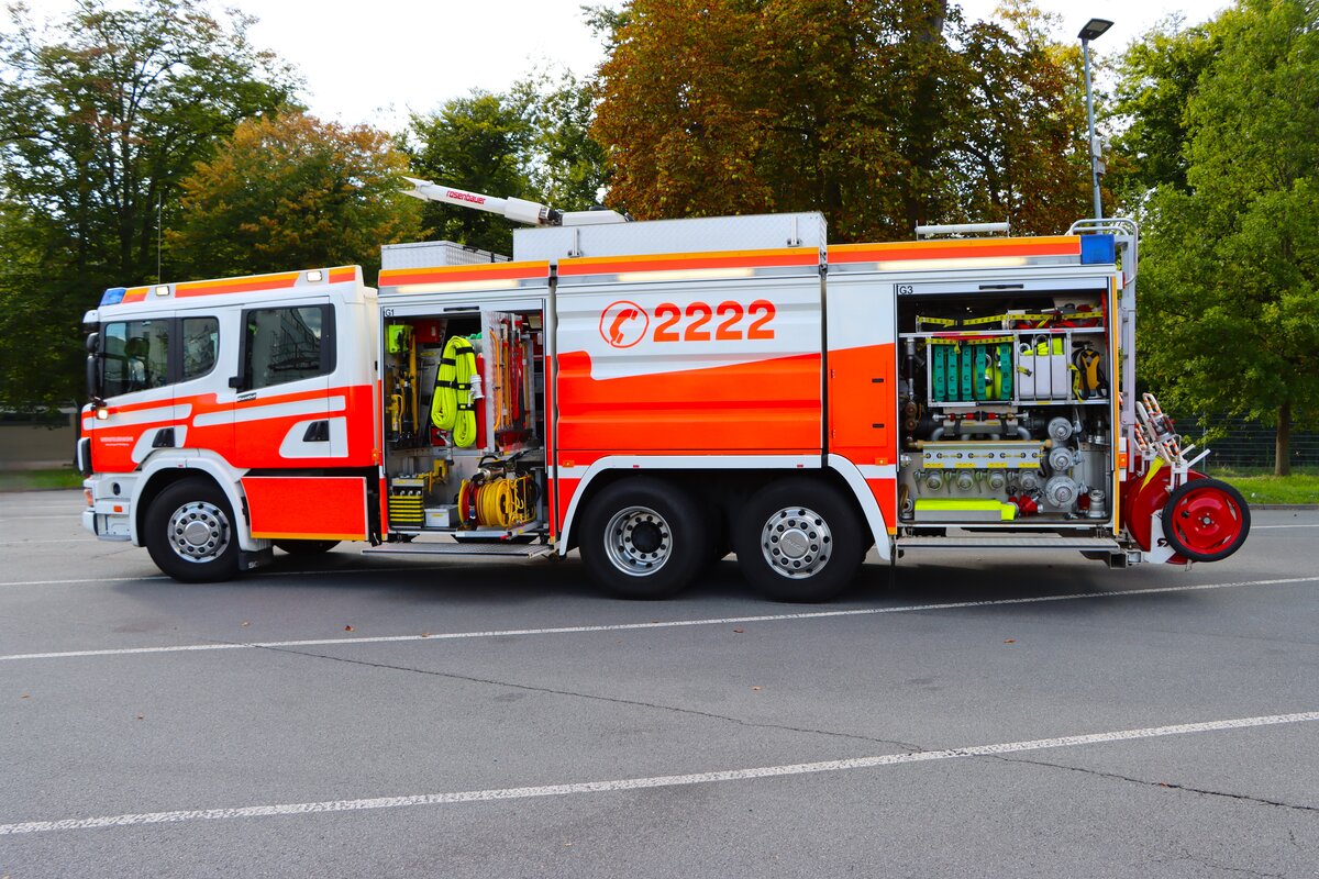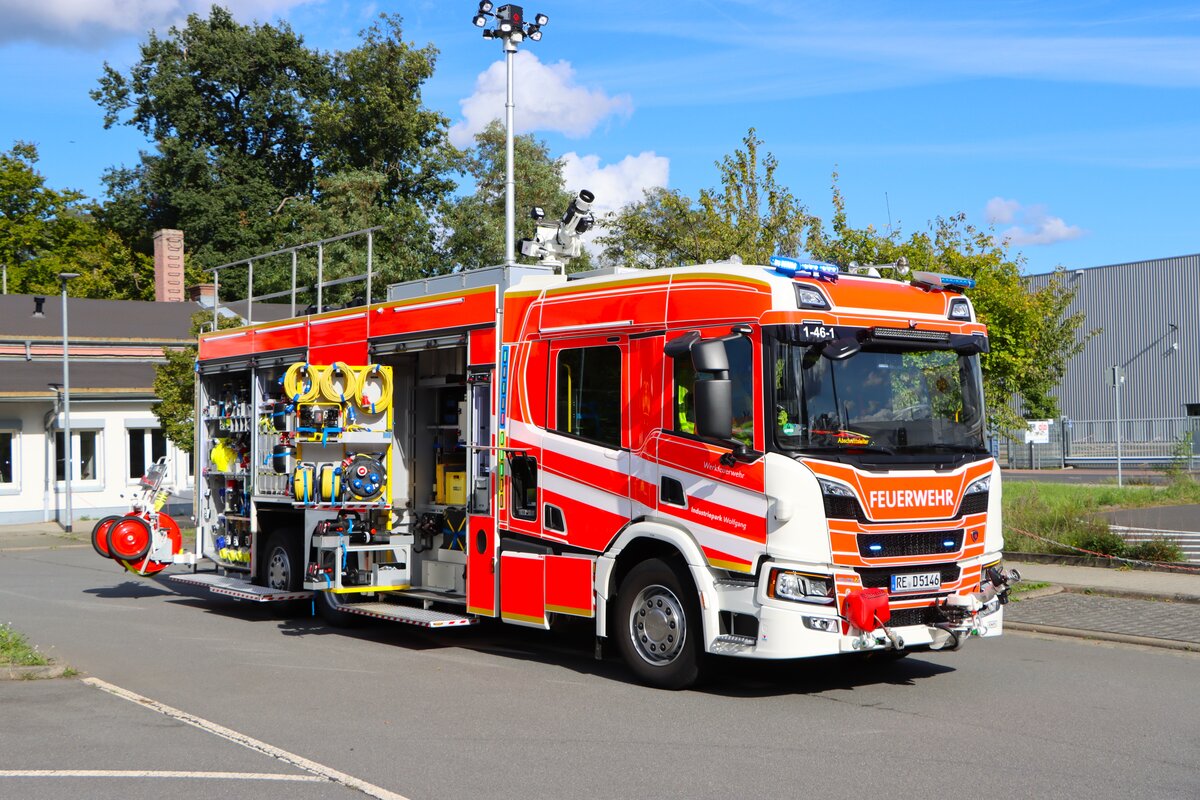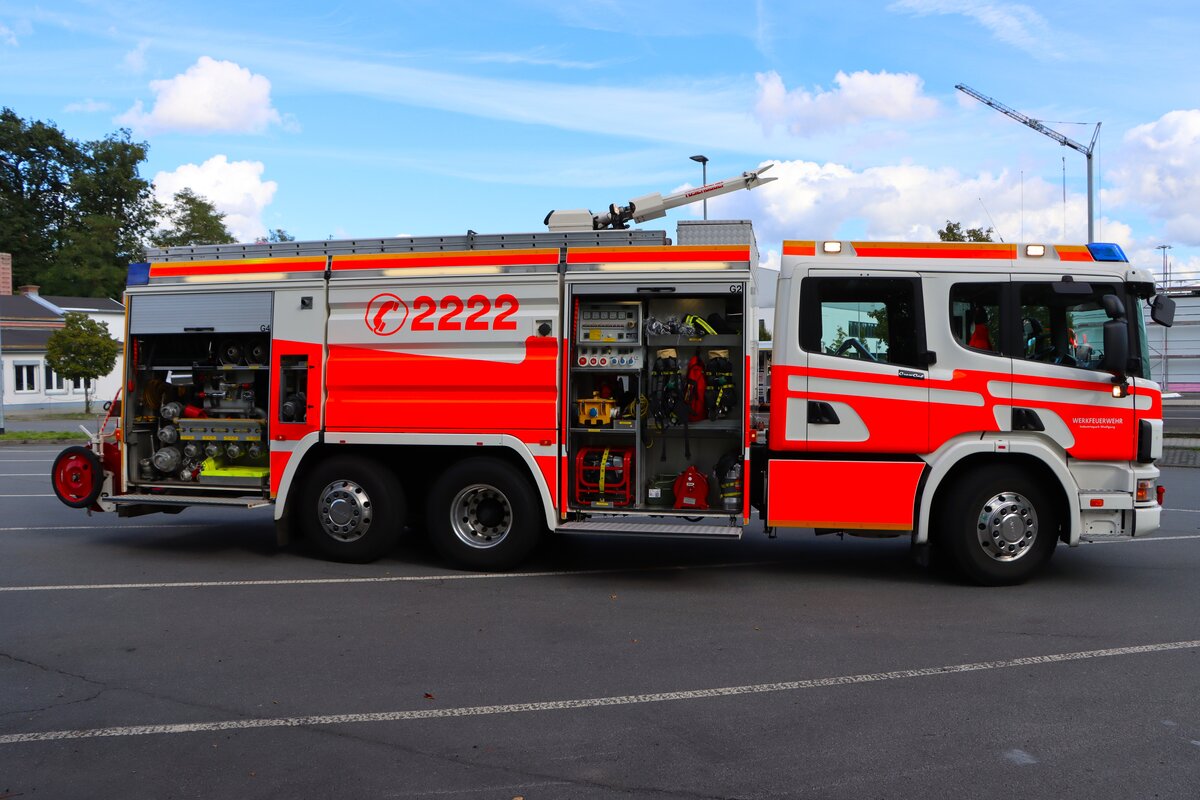 Werkfeuerwehr Industriepark Hanau Wolfgang Scania P500 EMPL HLF (Florian IPW 01-46-1) am 14.09.25 bei einen Fototermin. Danke für das tolle Shooting