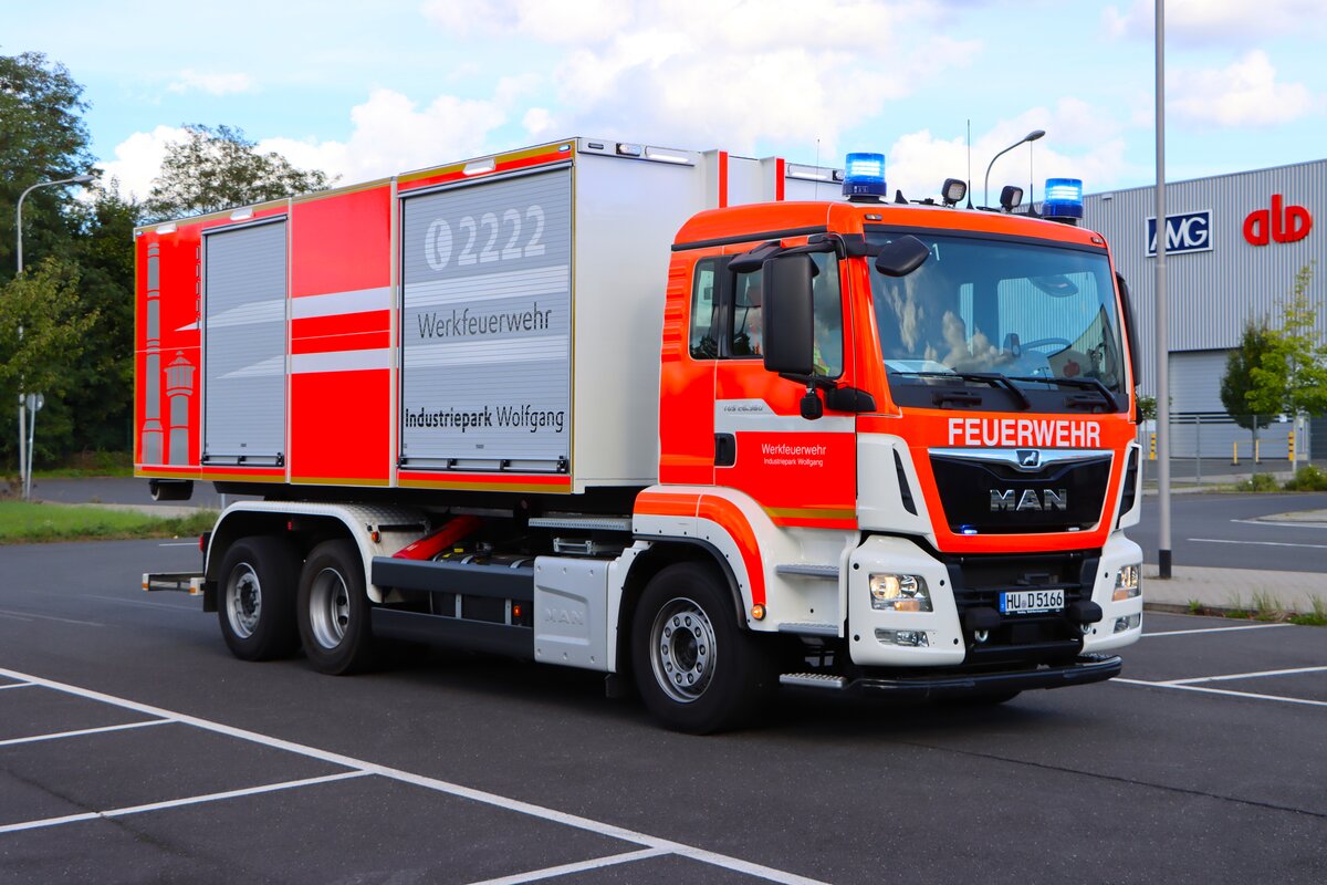 Werkfeuerwehr Industriepark Hanau Wolfgang MAN TGS 26.360 WLF mit AB-Sonderlöschmittel (Florian IPW 01-66-1) am 14.09.25 bei einen Fototermin. Danke für das tolle Shooting